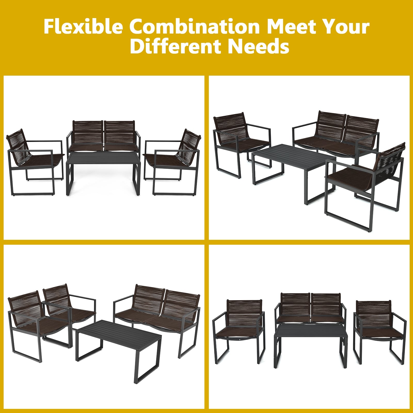 ● 4 Pieces Patio Conversation Set: This patio furniture set includes 1 loveseat 1 rectangle coffee table and 2 single sofas. In addition made of a heavy-duty steel frame this patio conversation sofa set is sturdy and will not break or deform easily after long-term use. Your summertime will be comfy and pleasant along with this patio furniture set.