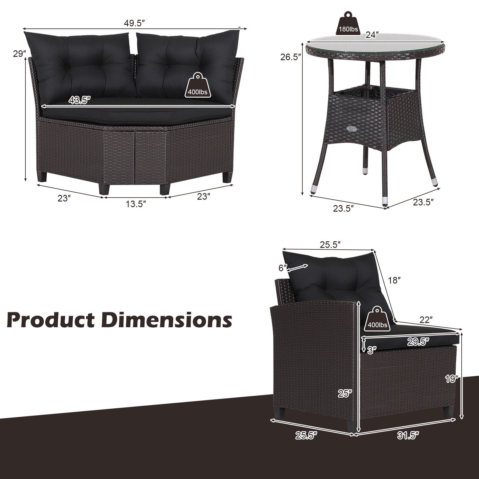 4 Pieces Patio Rattan Furniture Set Cushioned Sofa Glass Table-Black
