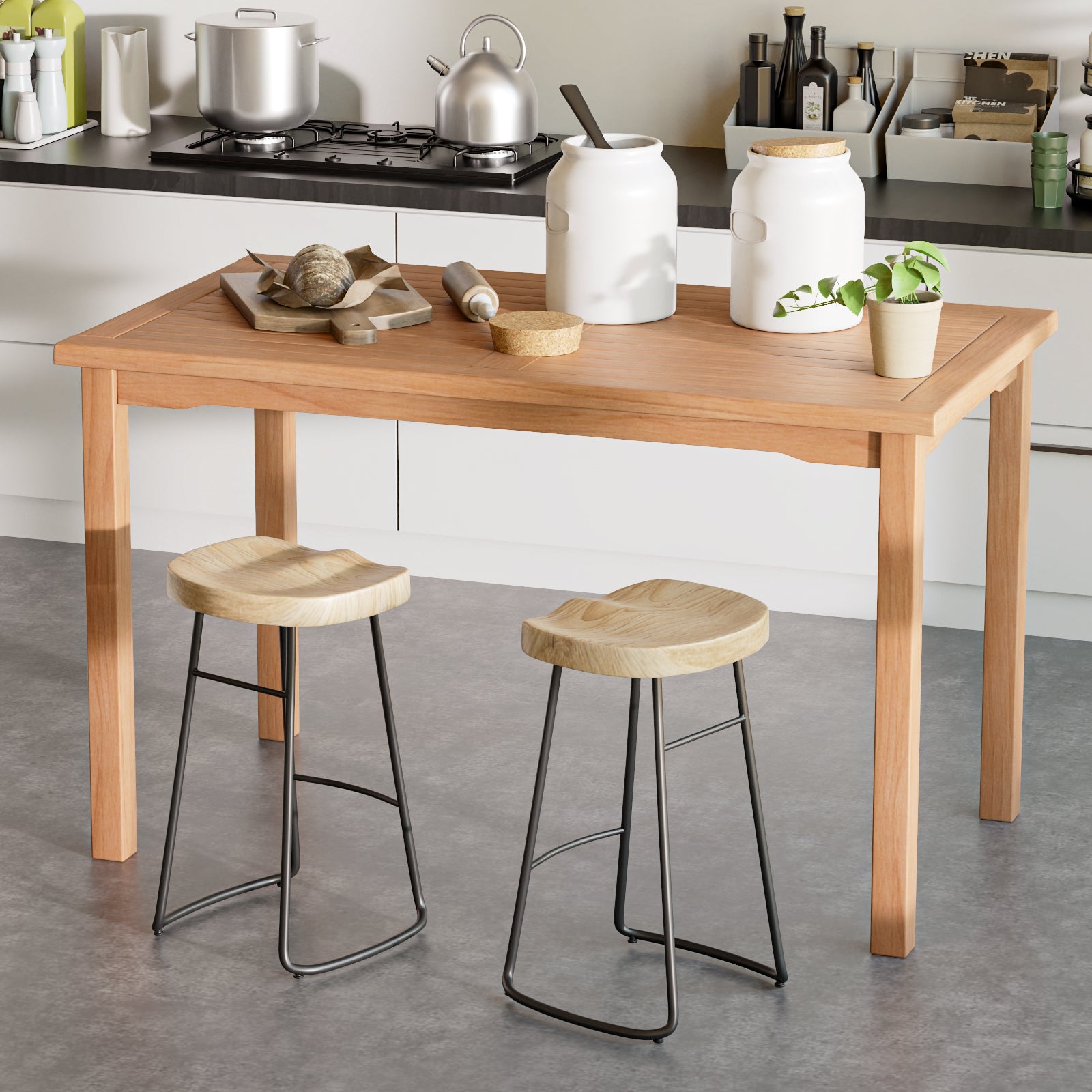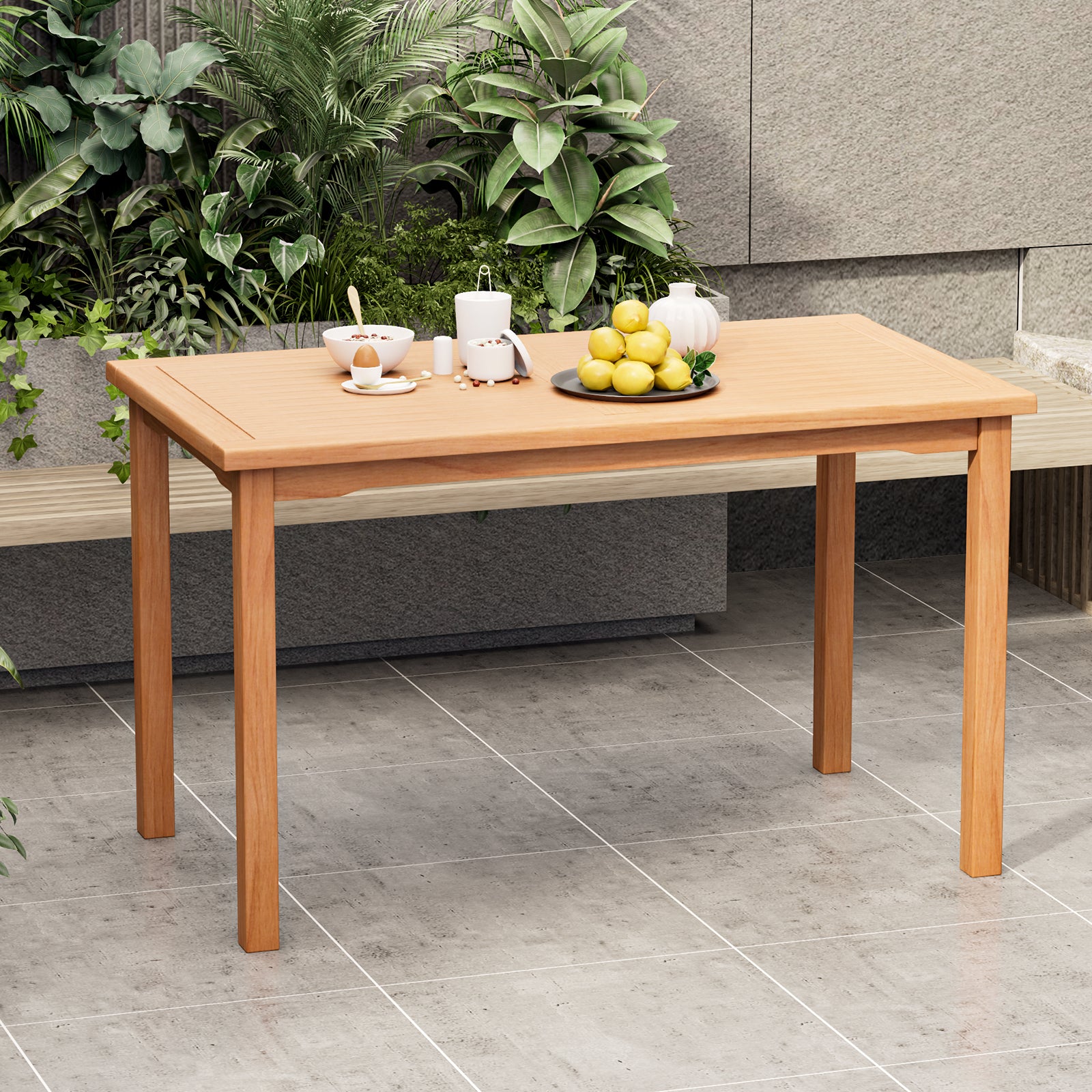 49 Inch Rectangle Patio Indonesia Teak Wood Dining Table with Slatted Tabletop Up to 6