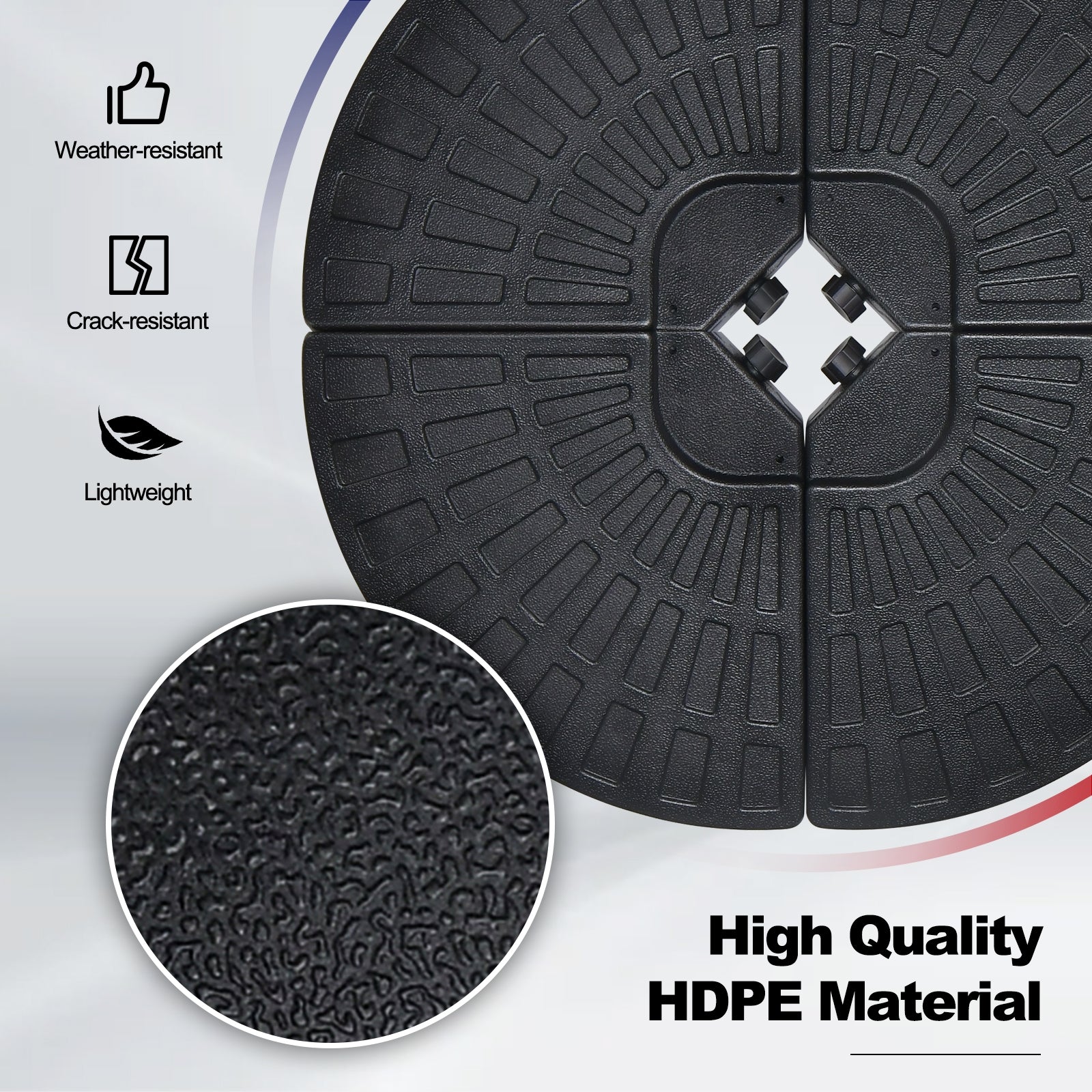 ● Portable and Lightweight Design: Before filled with weighted items each plate only weighs 3.5 lbs allowing you carry them with ease. Besides the 4pcs umbrella base comes with handle to help you transport it to garden yard poolside effortlessly.