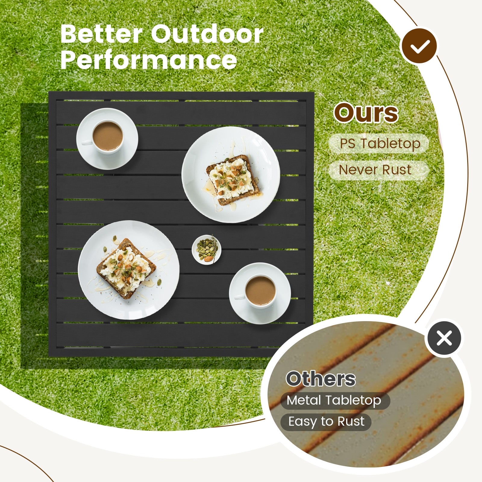 ● Selected Materials: Apart from the colorfast PE rattan and rustproof metal frame to deal with outdoor elements this outdoor bar table set also features high-quality PS tabletop that will never rust.