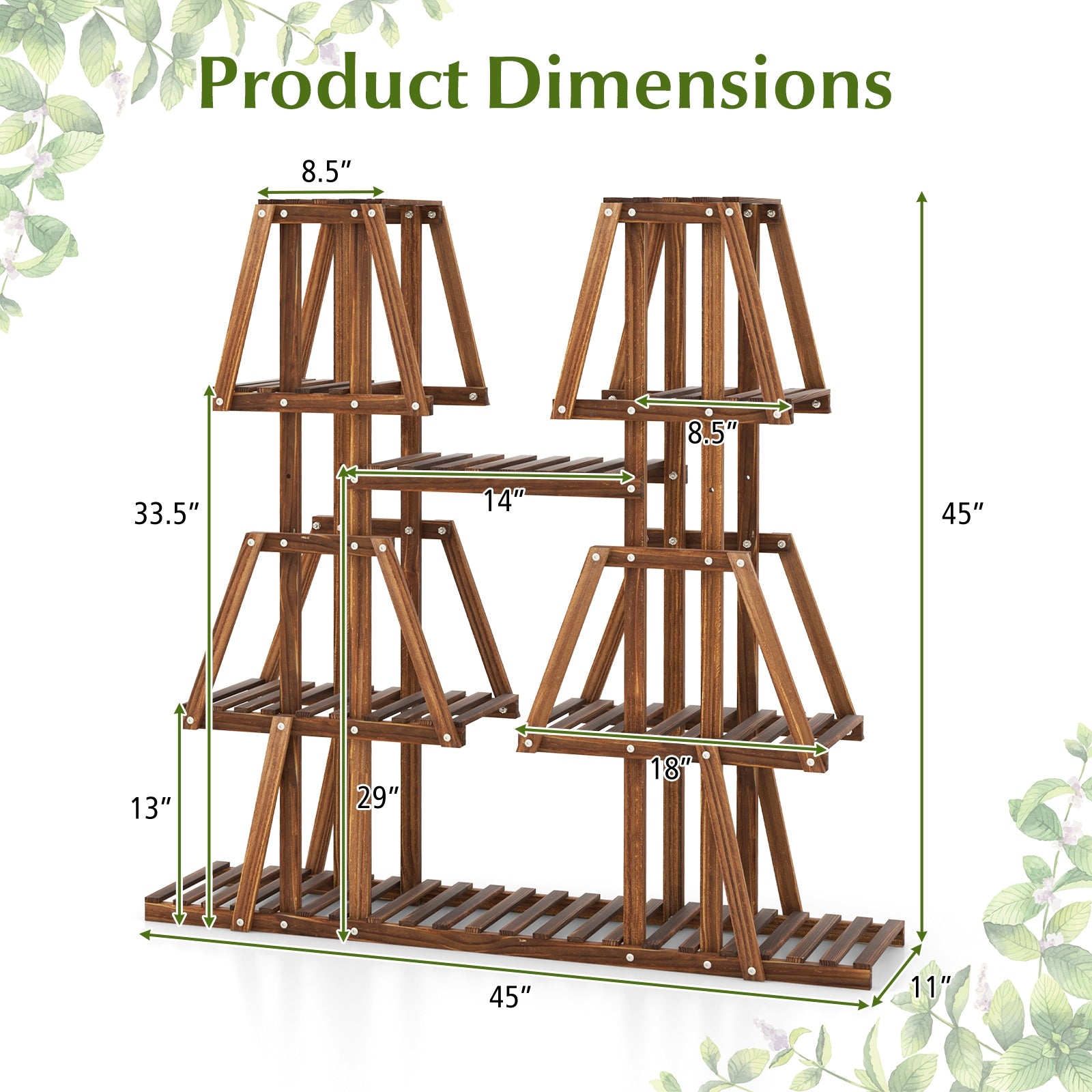 5-Tier 10 Potted Wood Plant Stand for Multiple Plants