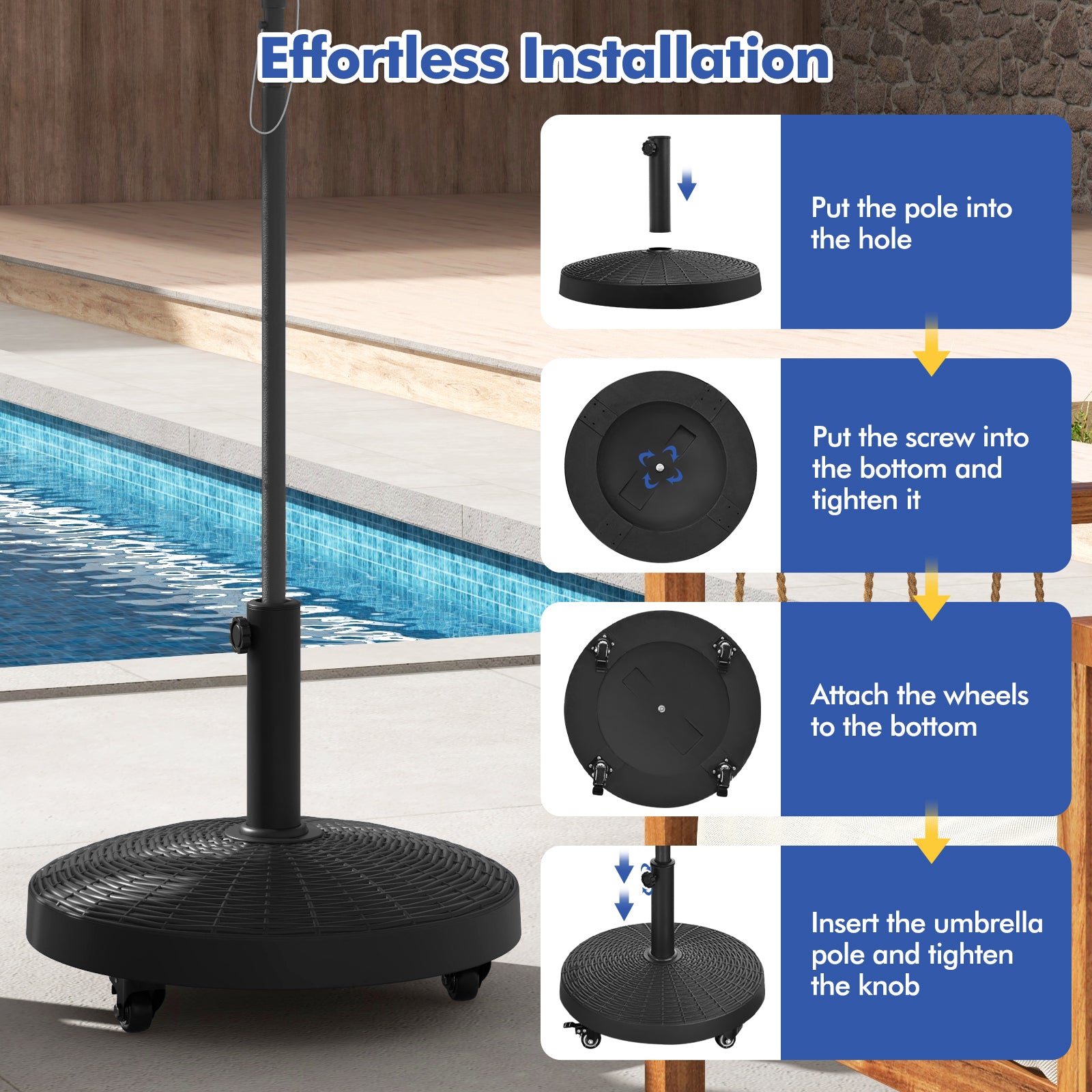 50 LBS Patio Wicker Style Resin Umbrella Base Stand Heavy Duty with Wheels