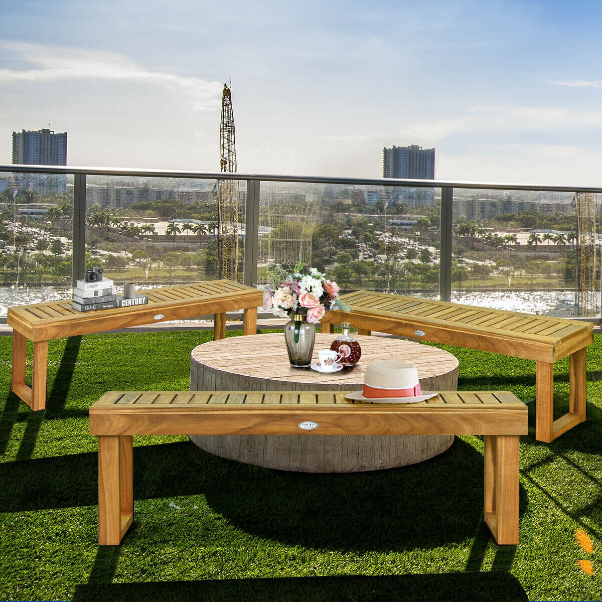 ● Premium Wood Material: This outdoor bench is made of natural acacia wood which is solid and not easy to be affected by temperature change. So the backless bench is super sturdy and durable. And the surface of this bench is painted with varnish which ensures the function of waterproof and scratch resistant.