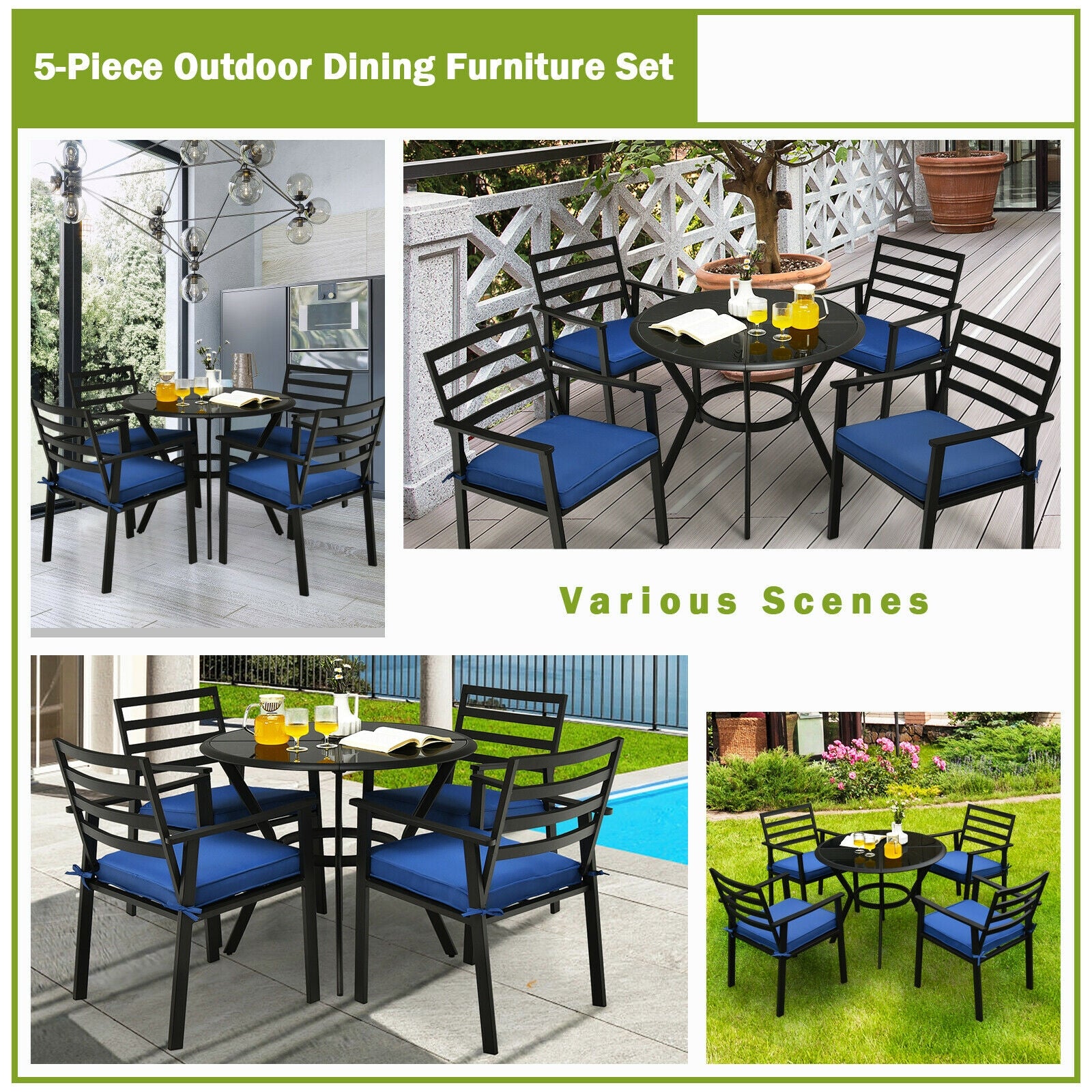 - ● 5-piece outdoor dining set suitable for the whole family