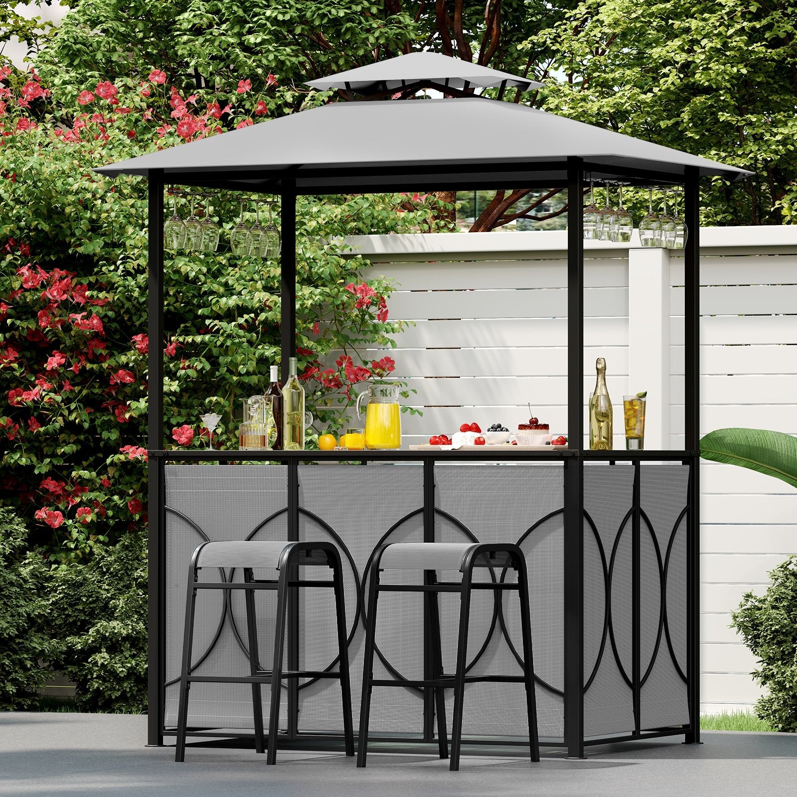 6.5 x 4 x 8 FT Grill Gazebo Set with 2 Bar Stools and Bar Table-Gray