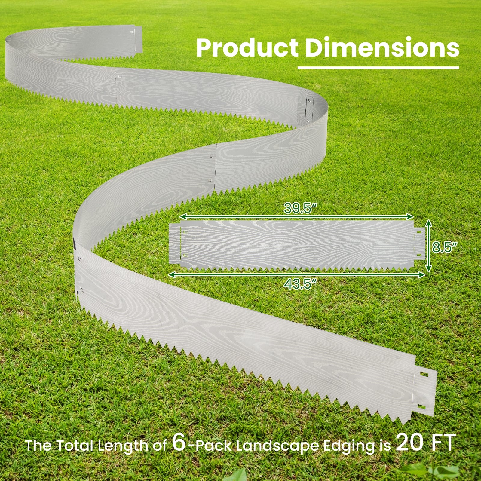 ● Rustproof Galvanized Metal Material: The garden boarder is constructed of heavy-duty galvanized metal that offers exceptional durability and rust resistance. Additionally the metal surfaces are designed with wood-like grains for a natural and rustic look.
