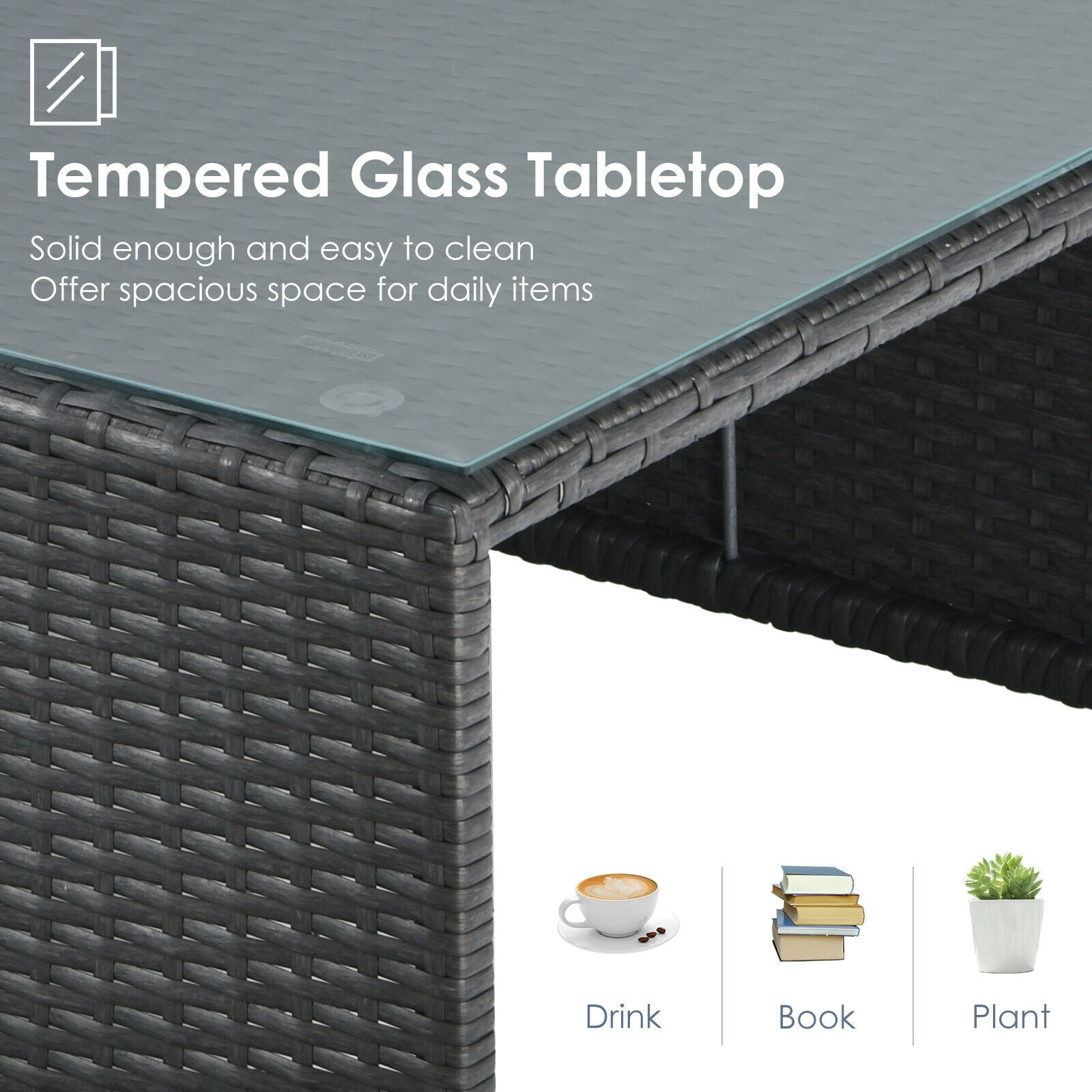 ● Space-saving Design and Wide Use: When the gathering or conversation is over you can put all the furniture pieces together as a whole which saves a lot of space for storage. And the elegant appearance with modern style makes the patio set ideal for various occasions such as backyard poolside and deck.