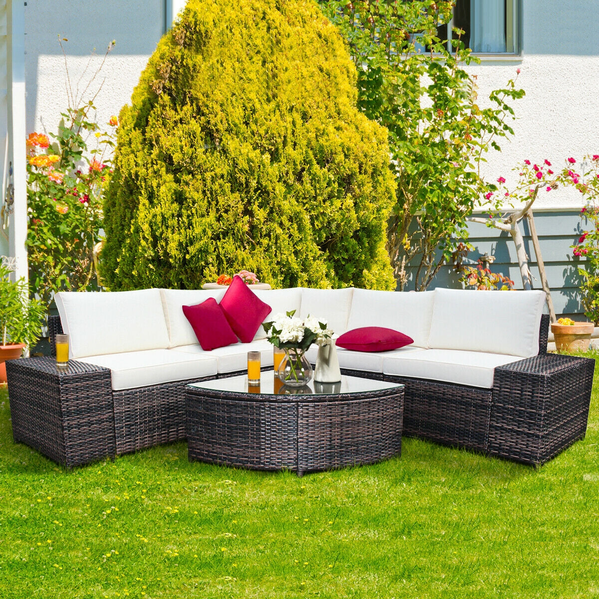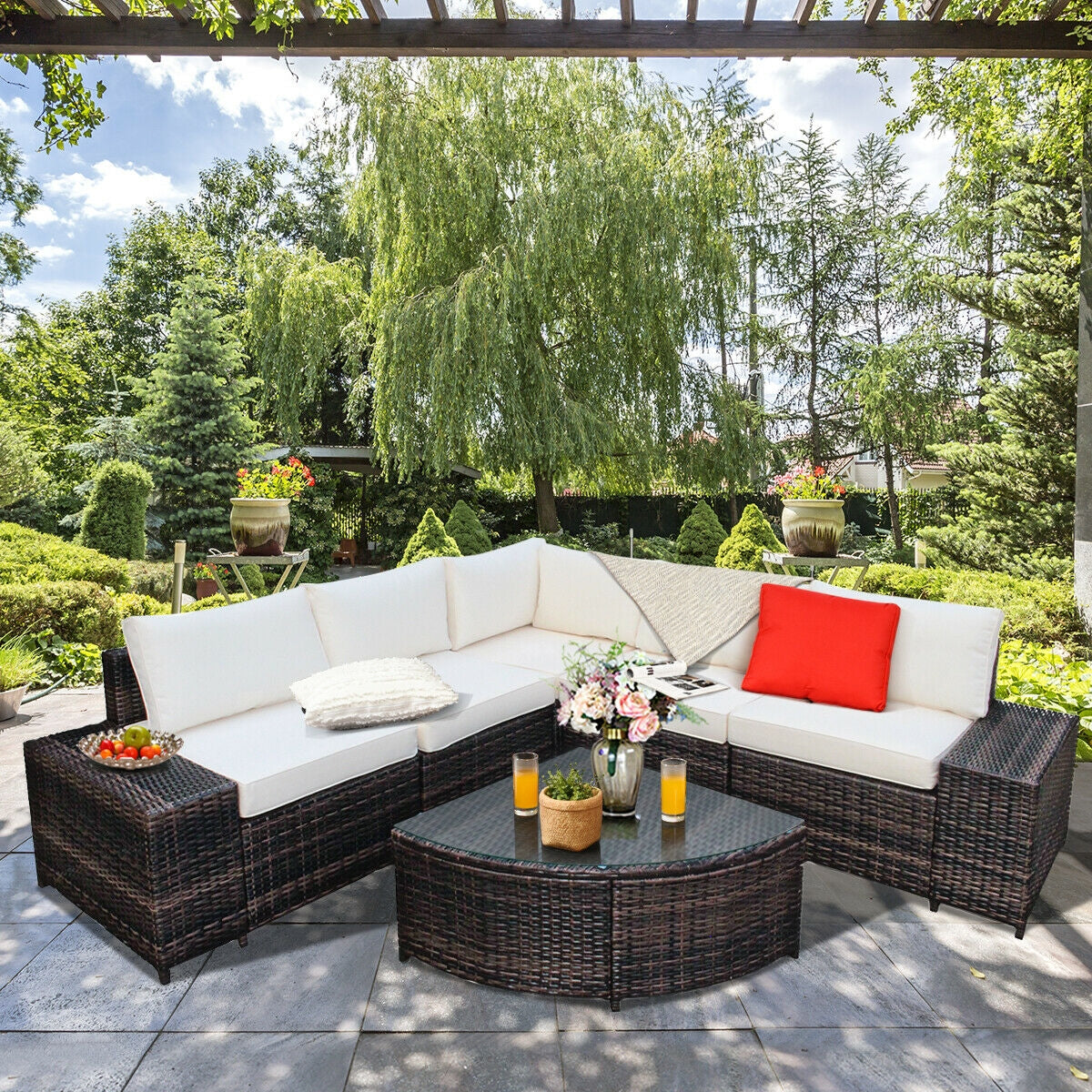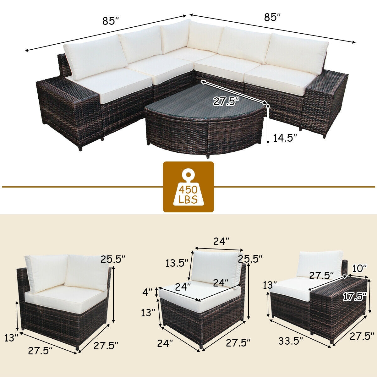 6 Pieces Rattan Furniture Cushioned Sofa Set-White