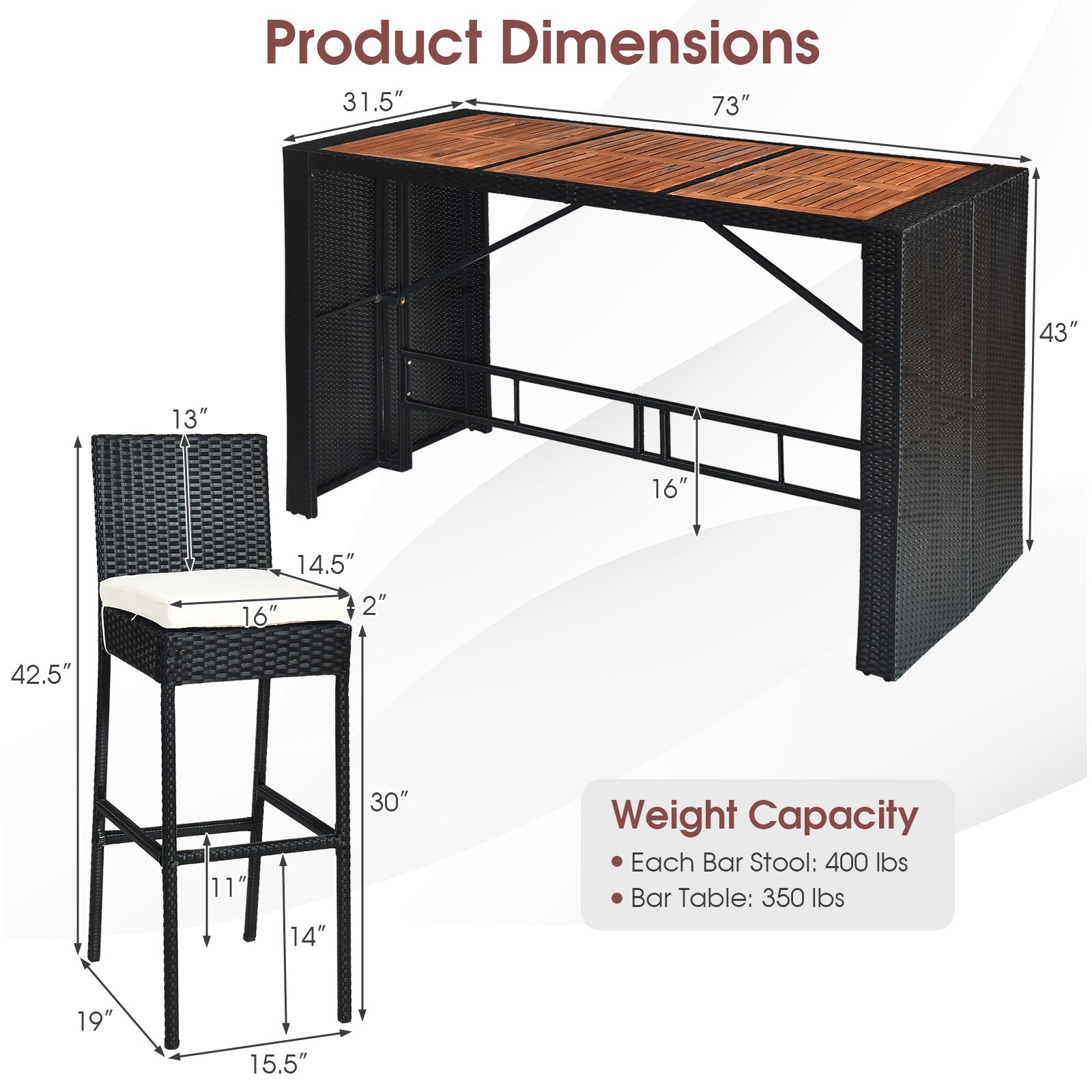 - Stool weight capacity: 400 lbs
