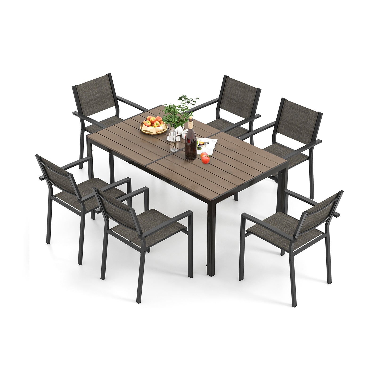 7 Piece Outdoor Dining Set with 6 Stackable Chairs and Large Rectangle Table-Gray