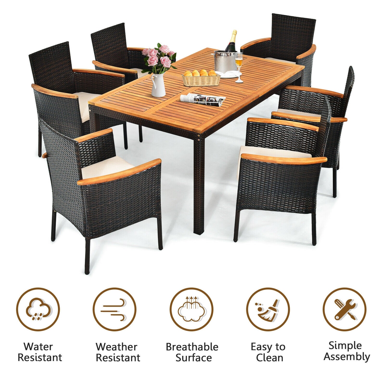 7 Pieces Patio Rattan Dining Set with Armrest Cushioned Chair and Umbrella Hole