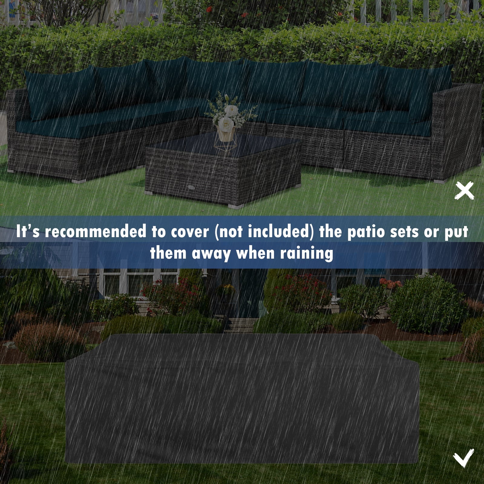 7 Pieces Patio Rattan Furniture Set with Sectional Sofa Cushioned-Green