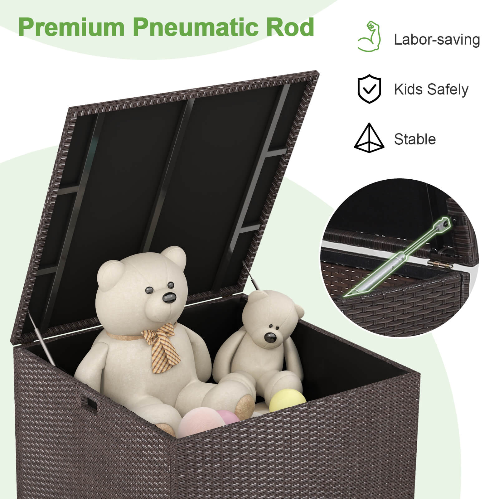 72 Gallon Rattan Outdoor Storage Box with Zippered Liner and Solid Pneumatic Rod