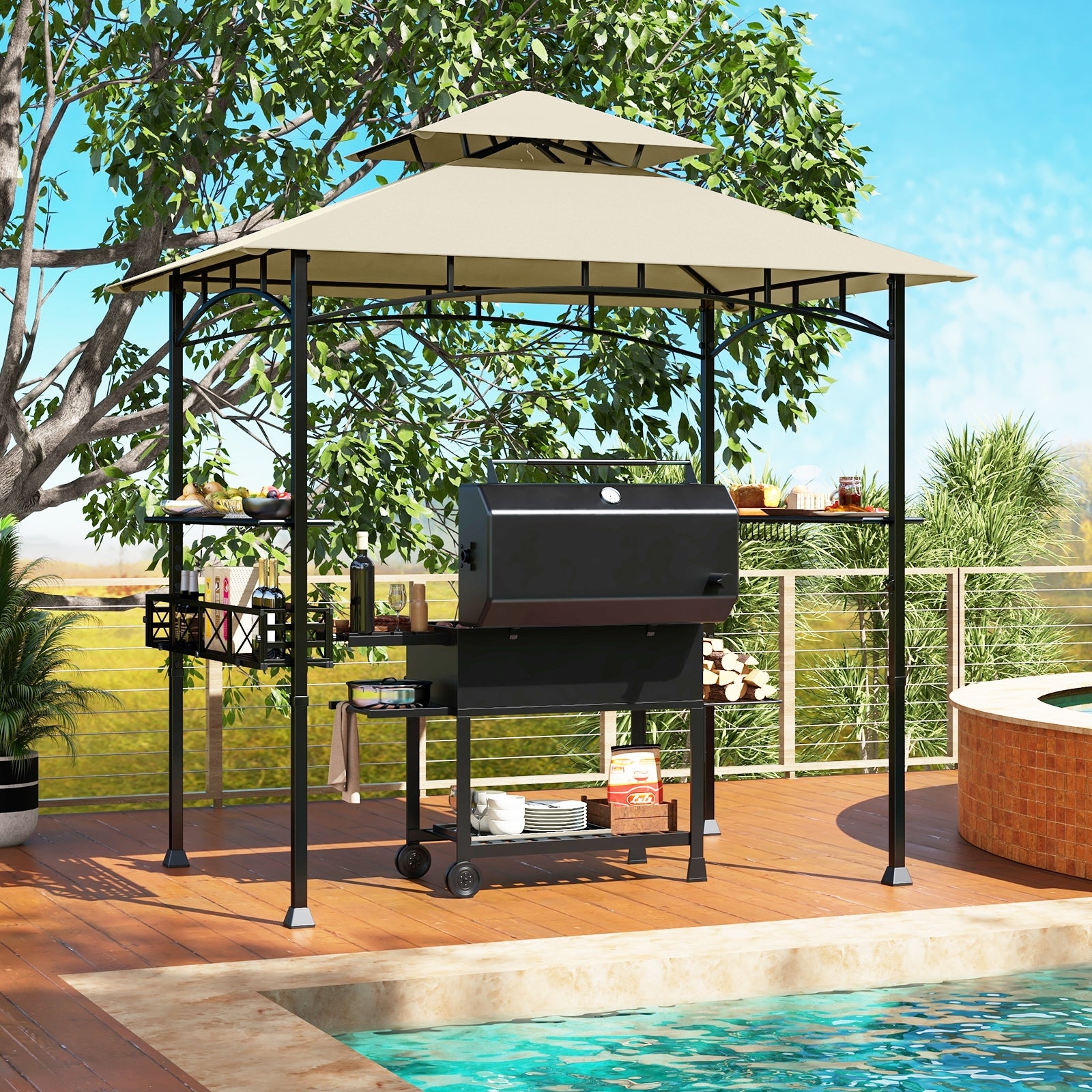 8 x 5 Feet Outdoor Grill Gazebo with 2 Side Shelves and 10 Hooks-Beige