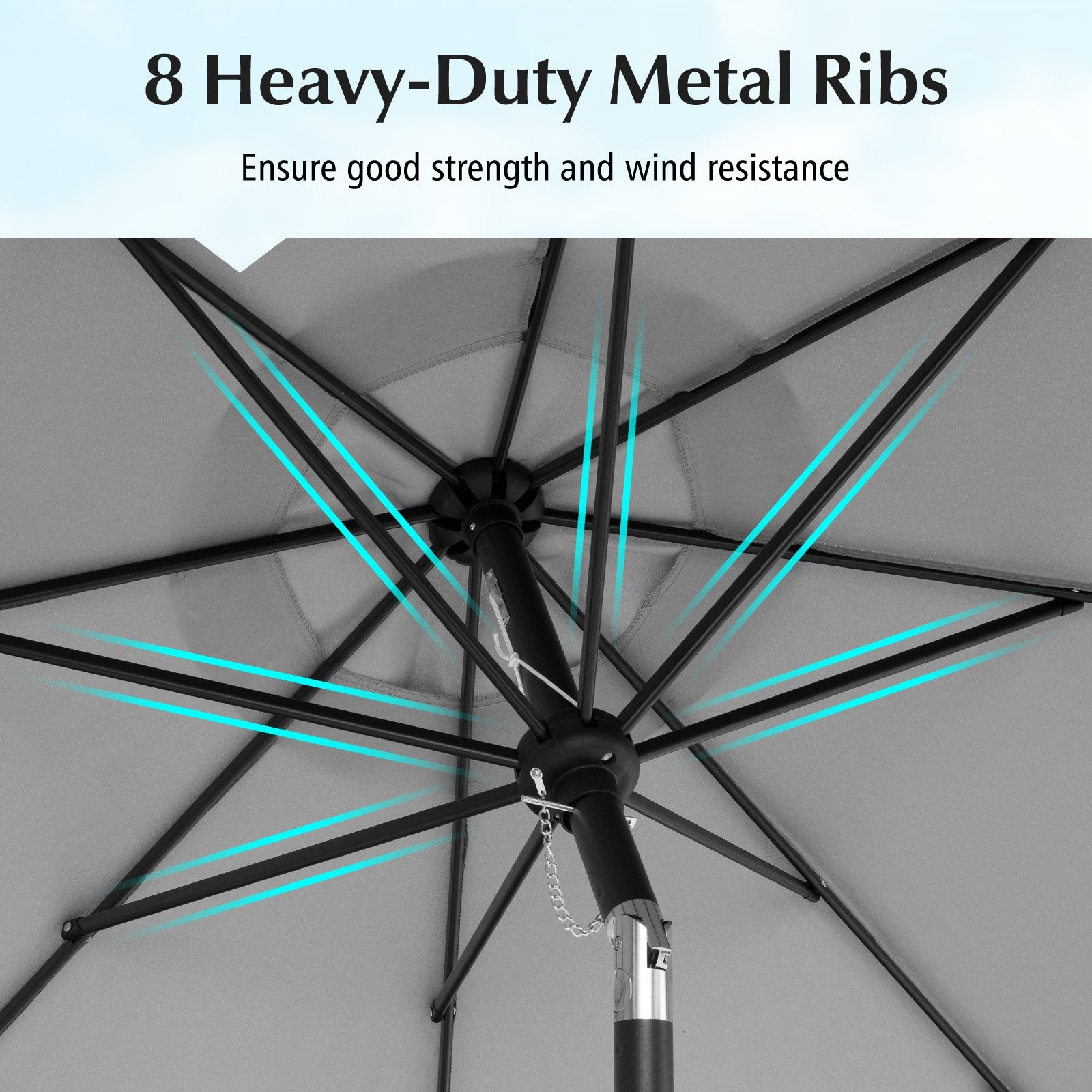 ● 8 heavy-duty umbrella ribs ensures good strength and wind resistance