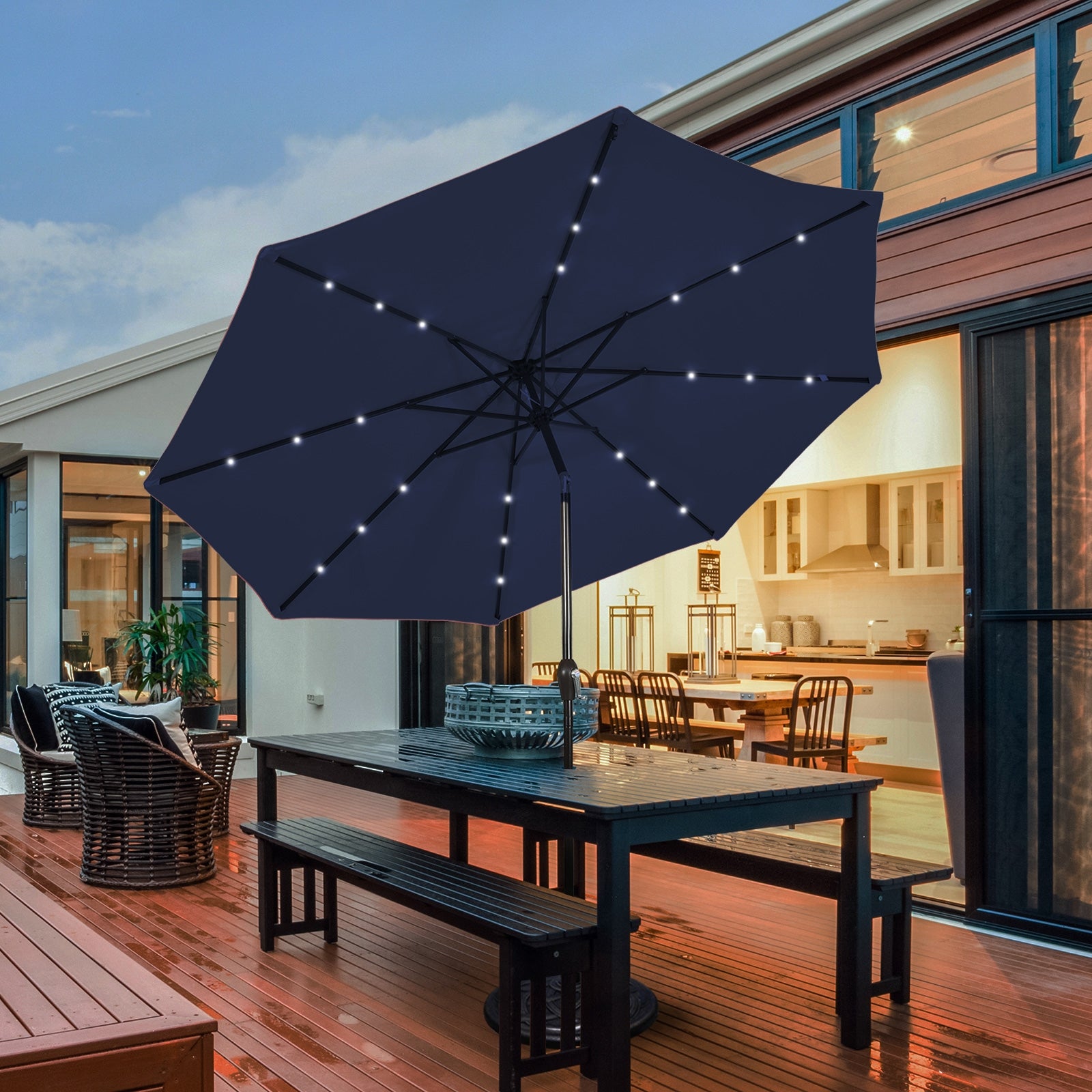 9 Feet Solar LED Lighted Patio Market Umbrella Tilt Adjustment Crank Lift-Dark Blue