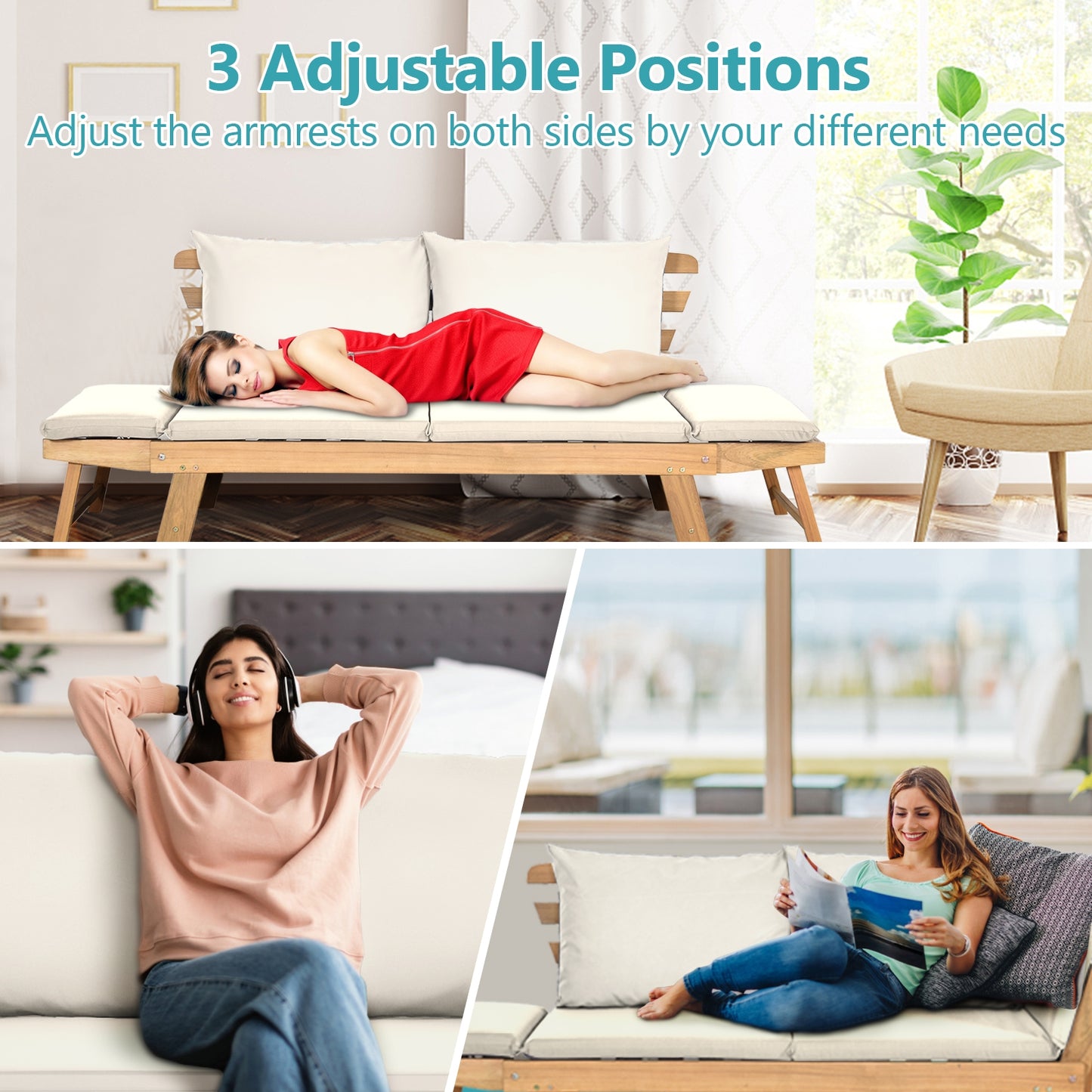 Adjustable Patio Convertible Sofa with Thick Cushion-White