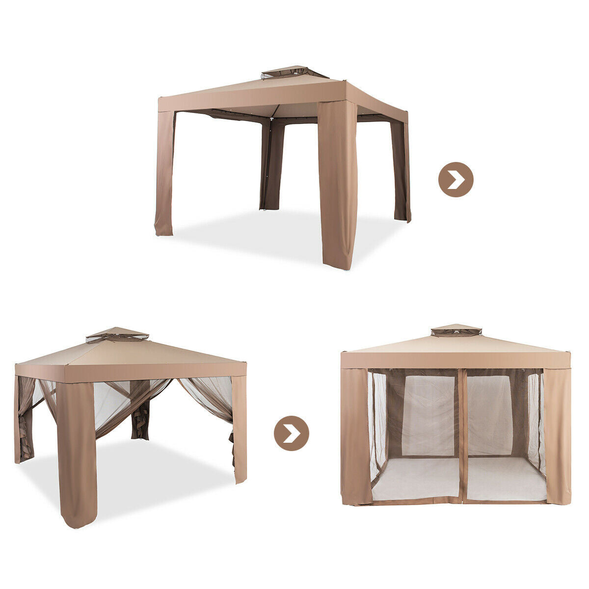 Canopy and Garden Structures Gazebo with Netting for Outdoors-Brown
