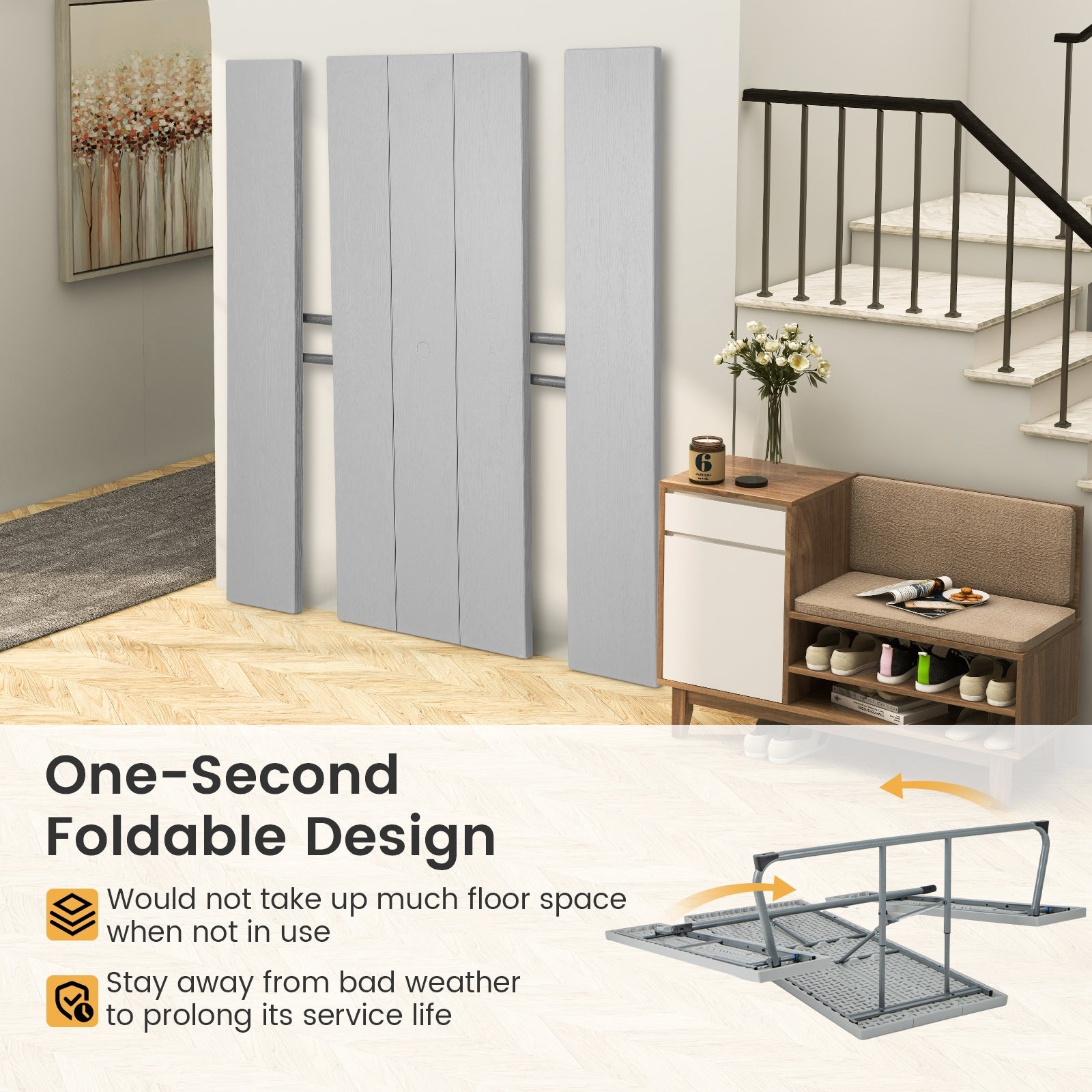 Folding Picnic Table Set with Metal Frame and All-Weather HDPE Tabletop Umbrella Hole-Gray