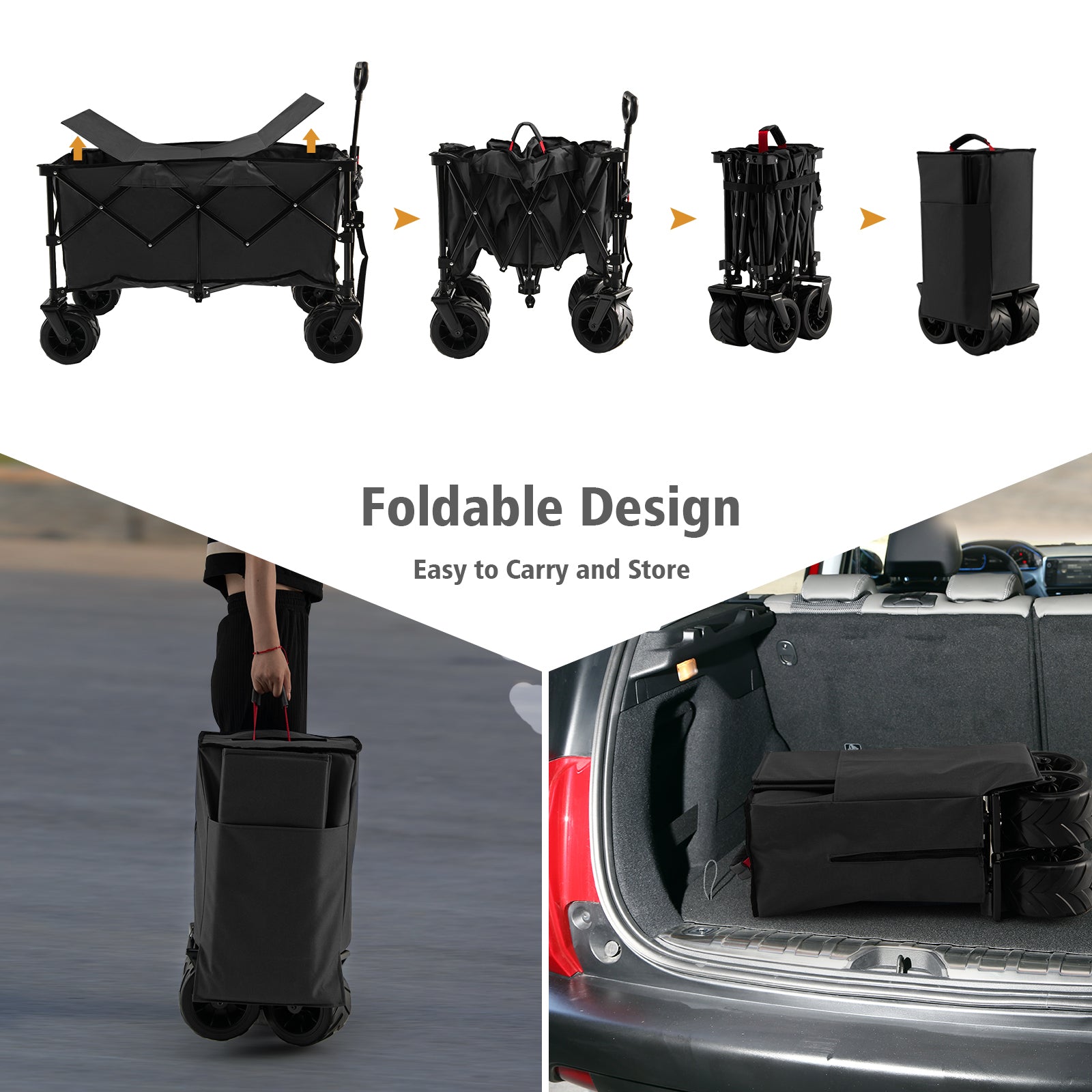 Folding Utility Garden Cart with Wide Wheels and Adjustable Handle-Black