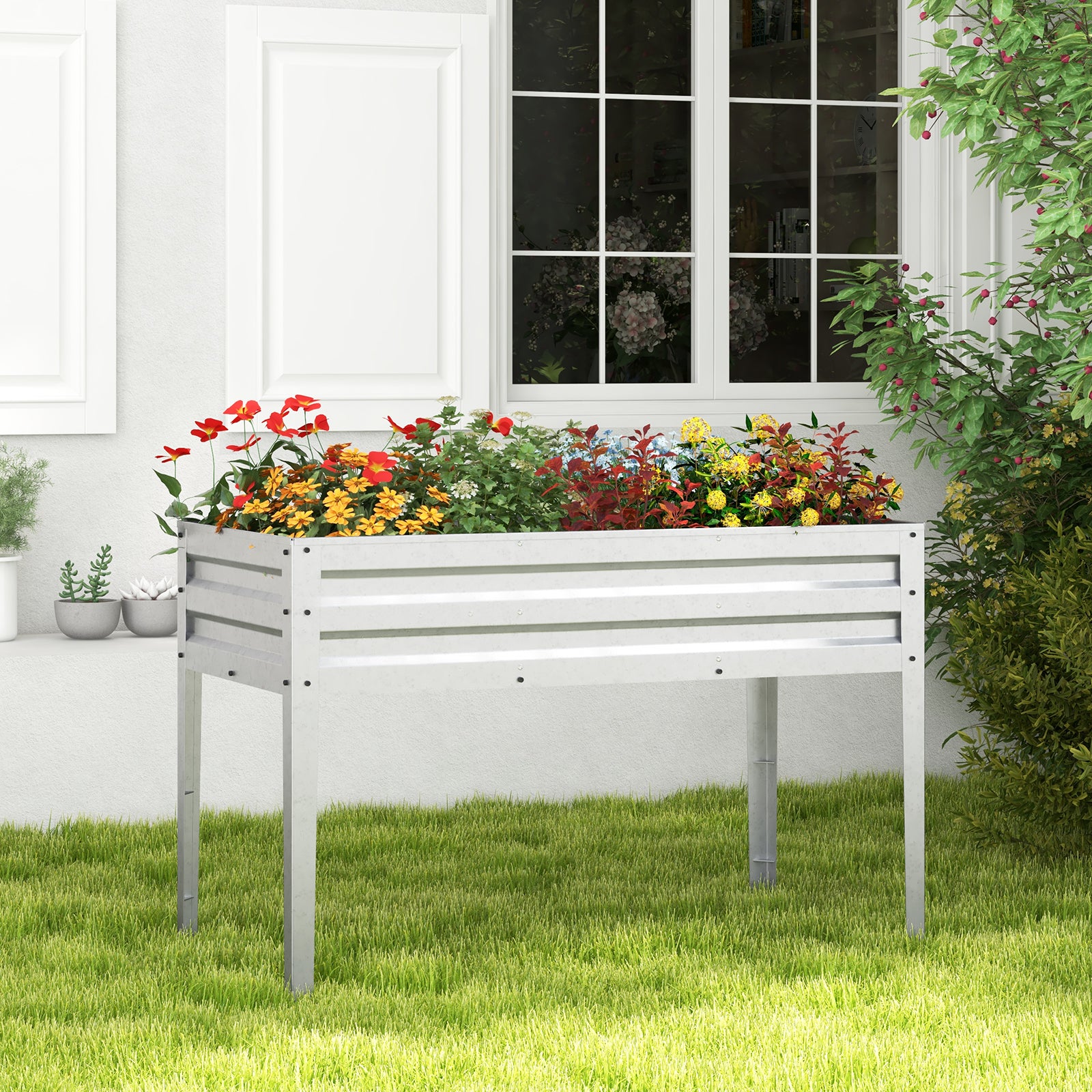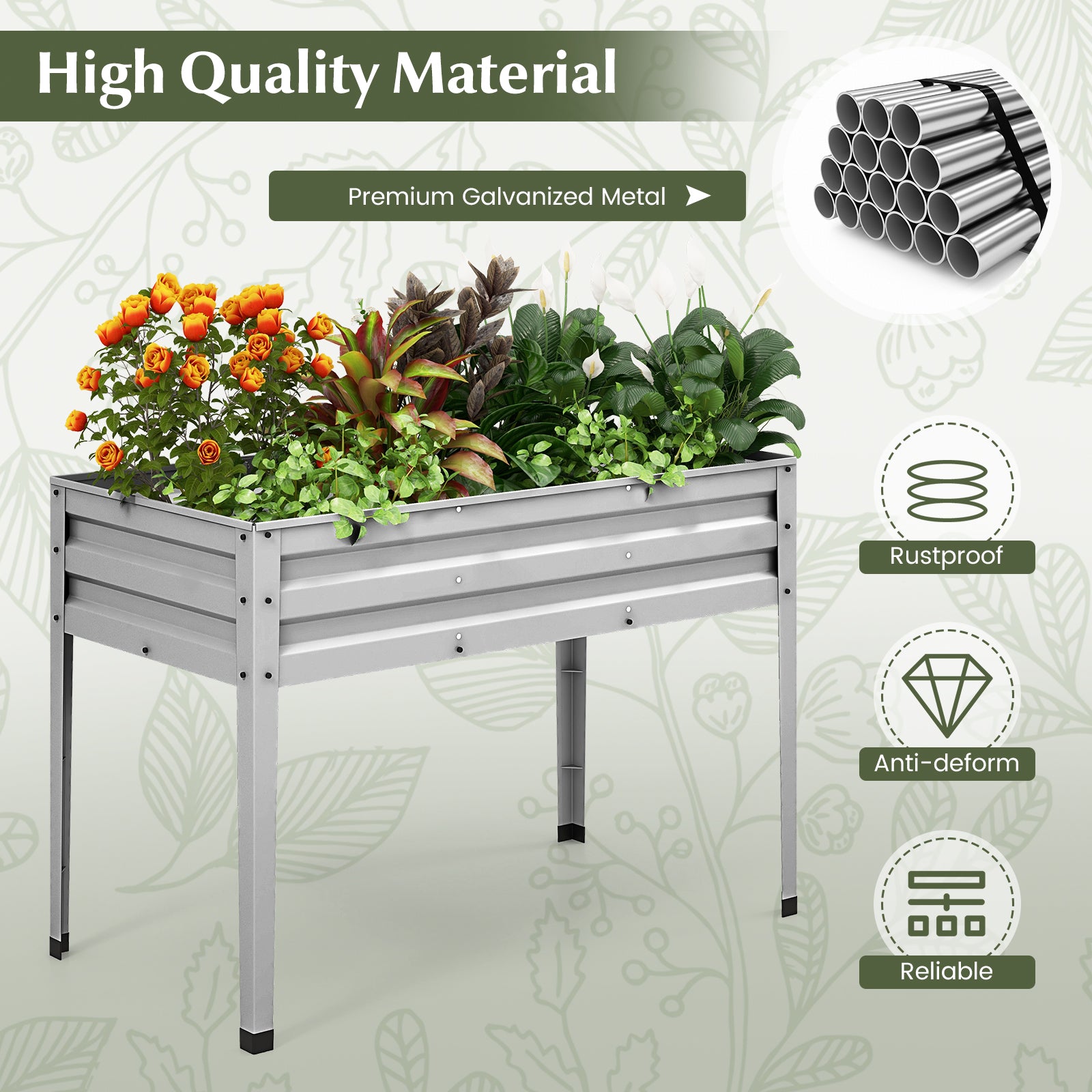 Galvanized Raised Garden Bed Elevated Planter Box with Legs and Drainage Hole-Silver