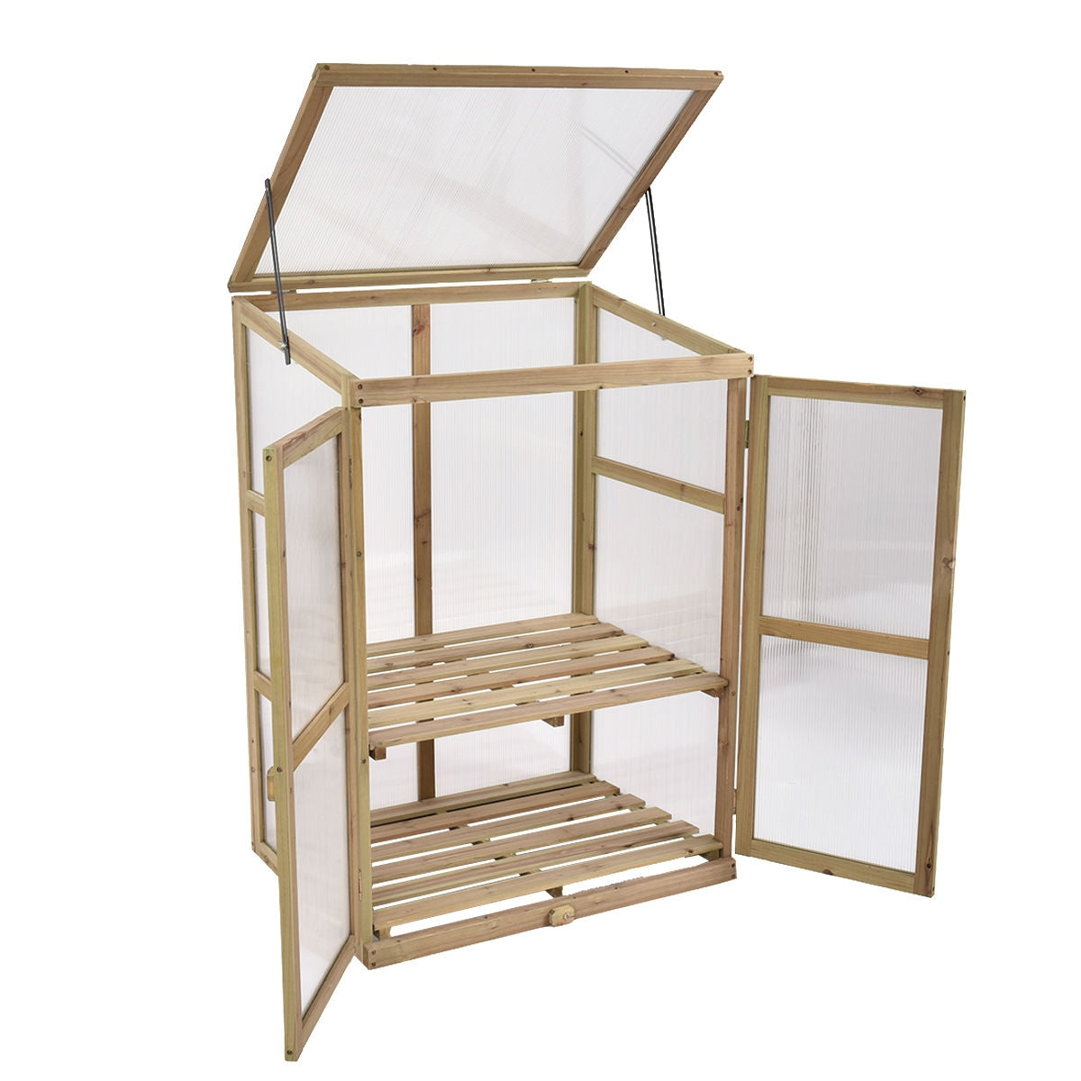 Feature with solid Fir wood frame the greenhouse is durable and sturdy. Feature with bottom shelf it provides plenty space for planter and gardening tools. Because of the perfect size for the mini greenhouse you can put it in your backyard garden yard and other living space.