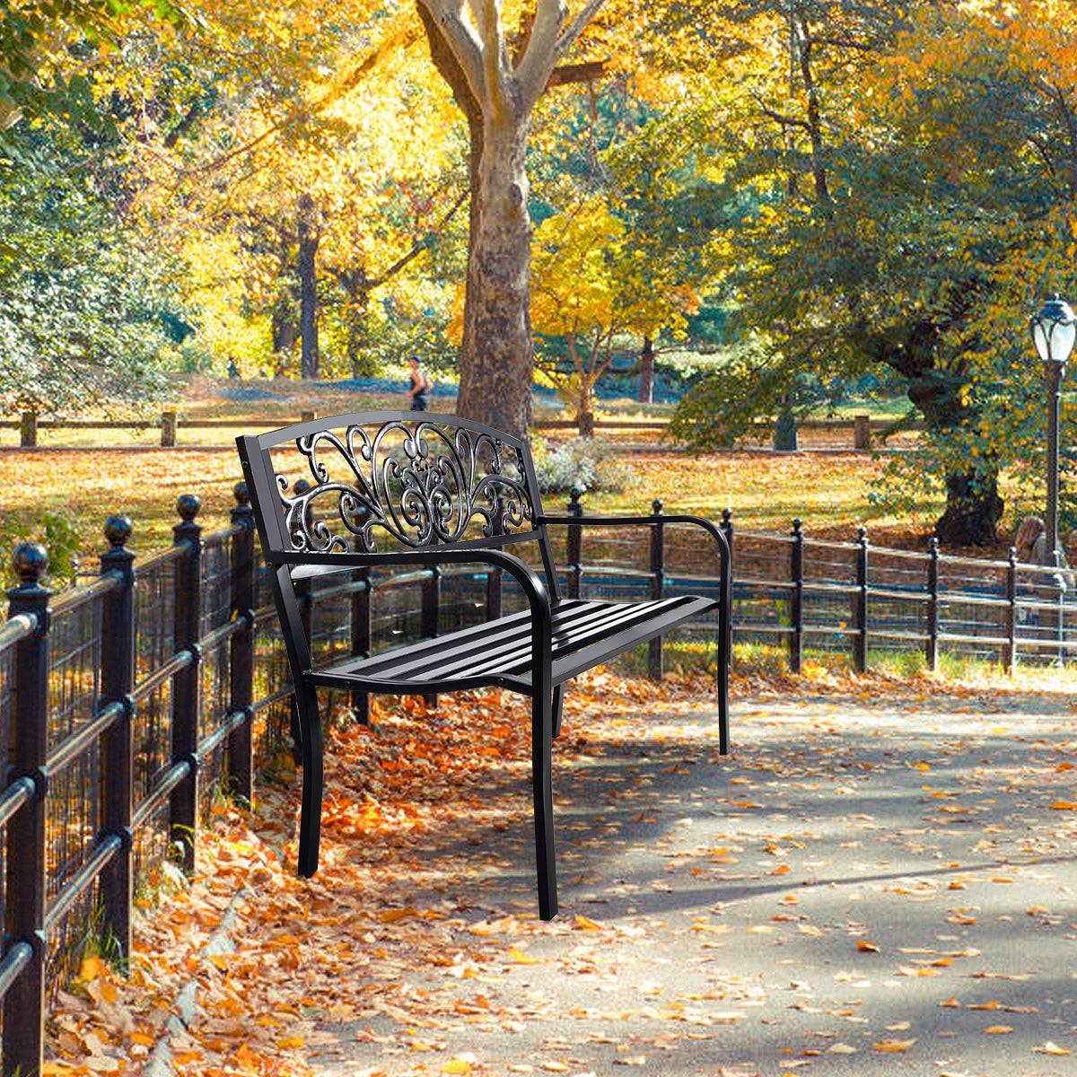 50 Inch Patio Park Steel Frame Cast Iron Backrest Bench Porch Chair