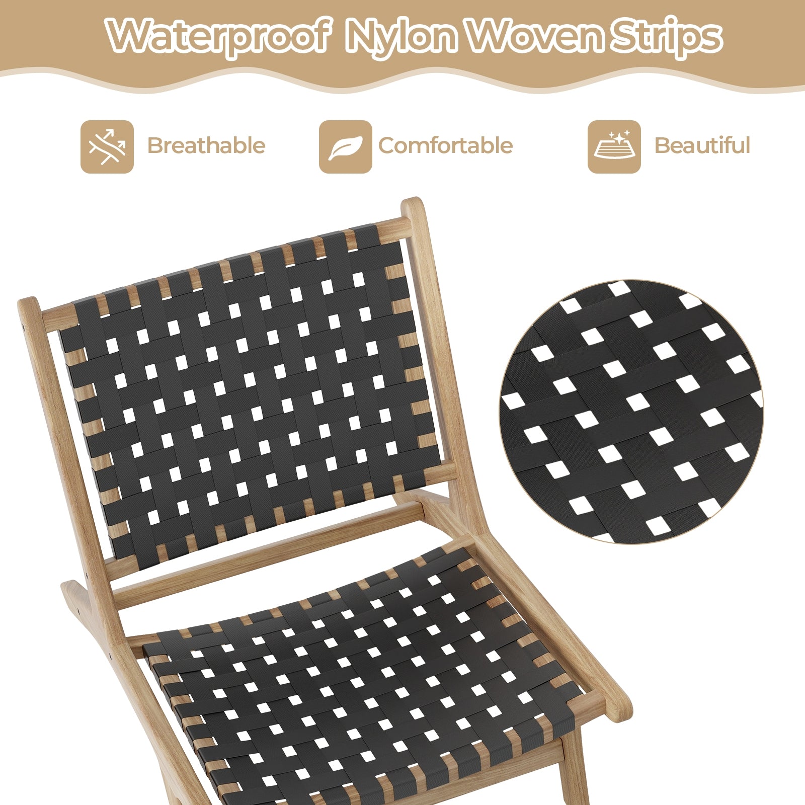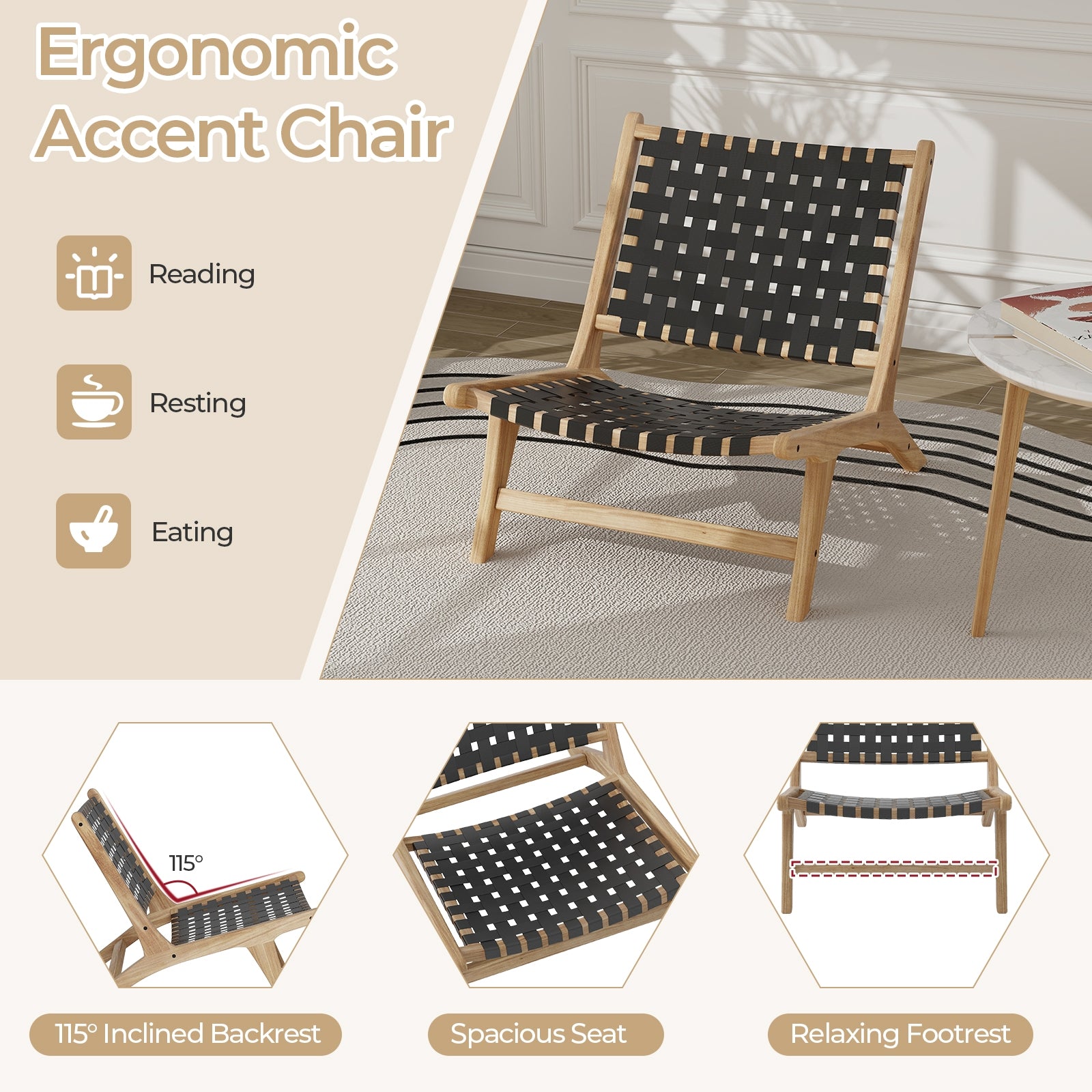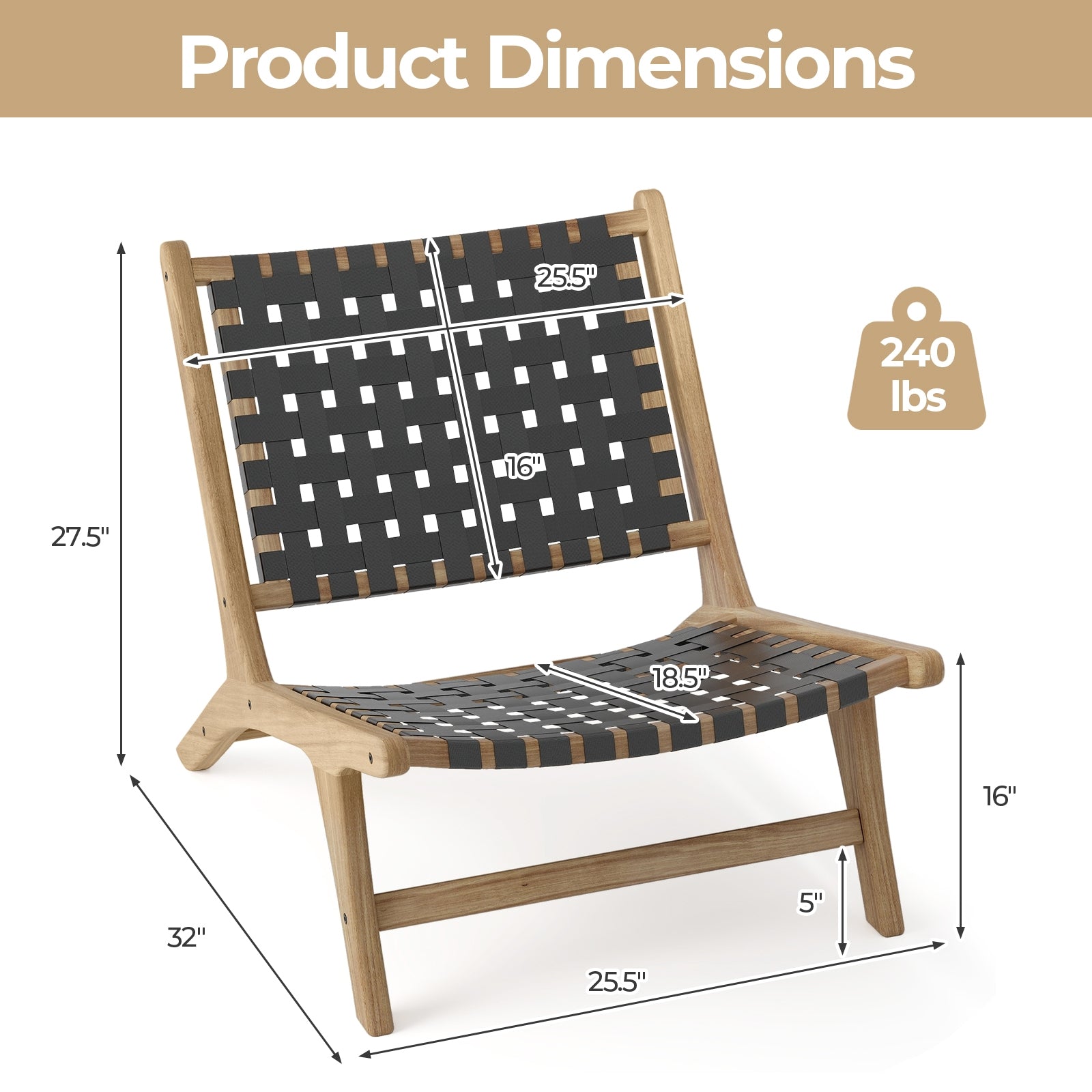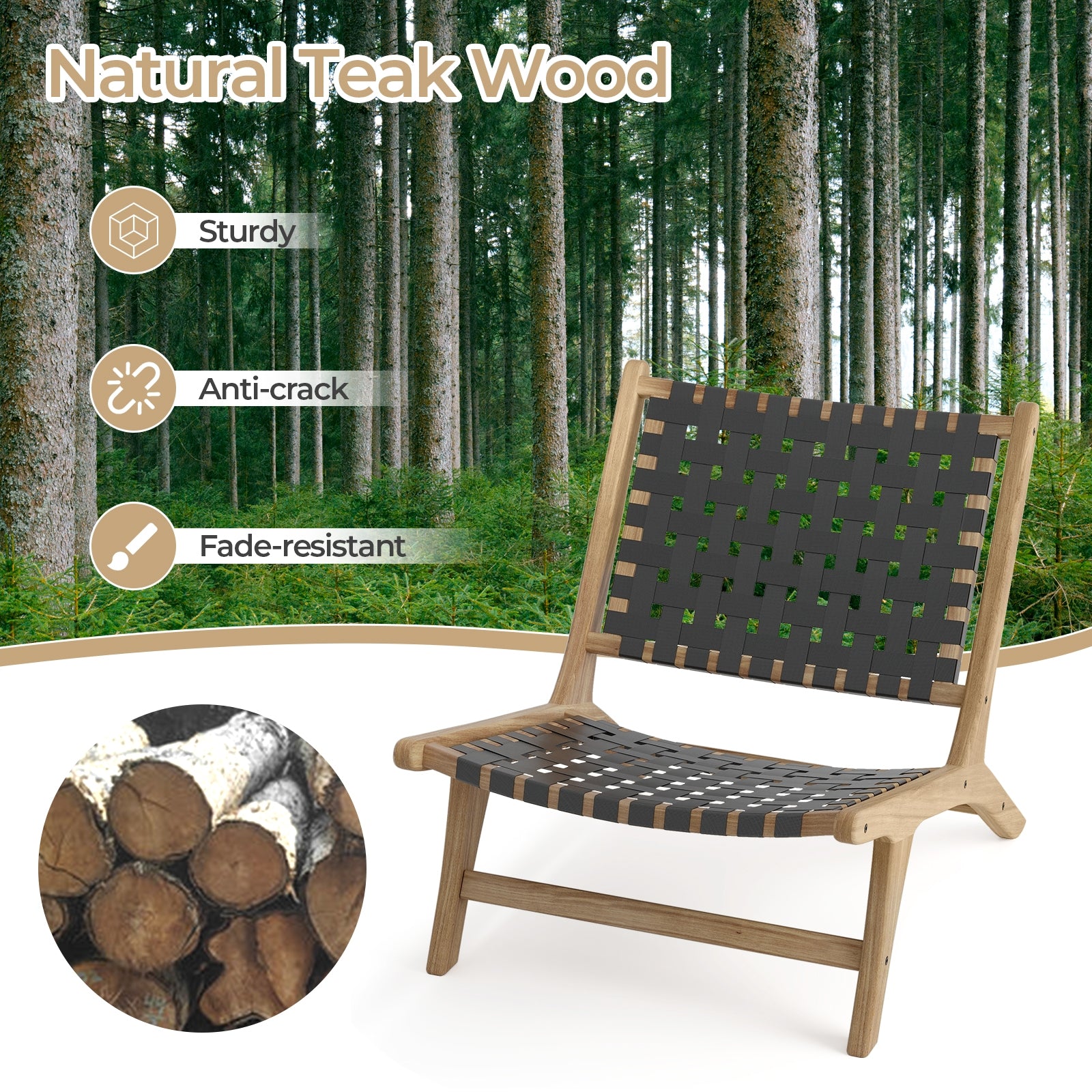 Modern Armless Teak Wood Lounge Chair with Nylon Woven Backrest and Seat-Black