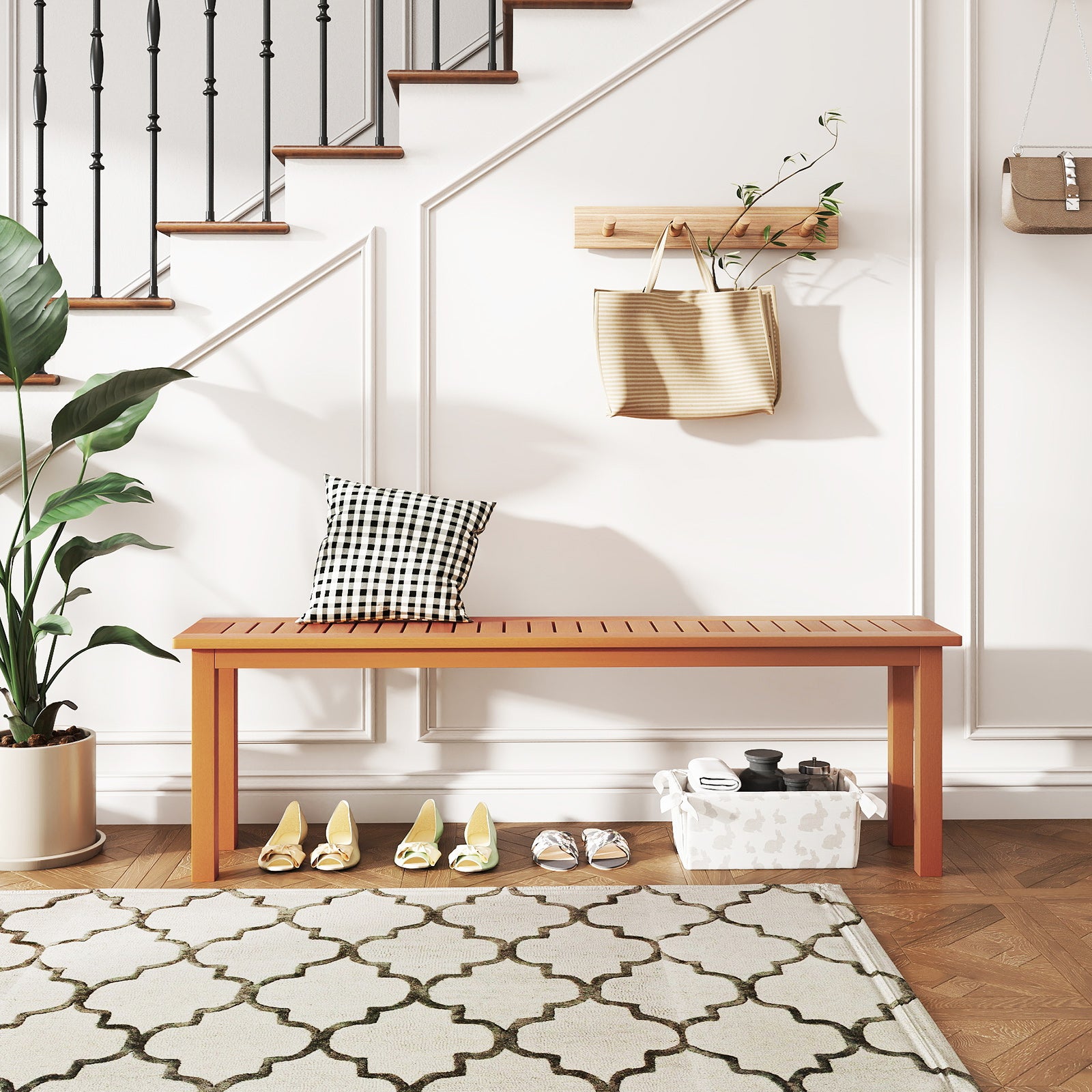 Outdoor 59 Inch Long Patio Dining Backless Wooden Bench with Teak Oil Finish