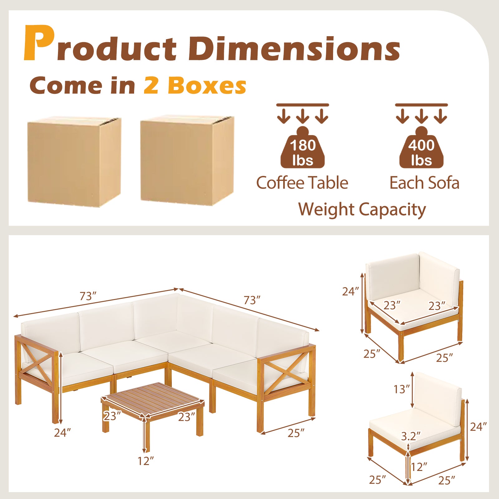 Outdoor 6 Pieces Acacia Wood Patio Sectional Furniture Set-White