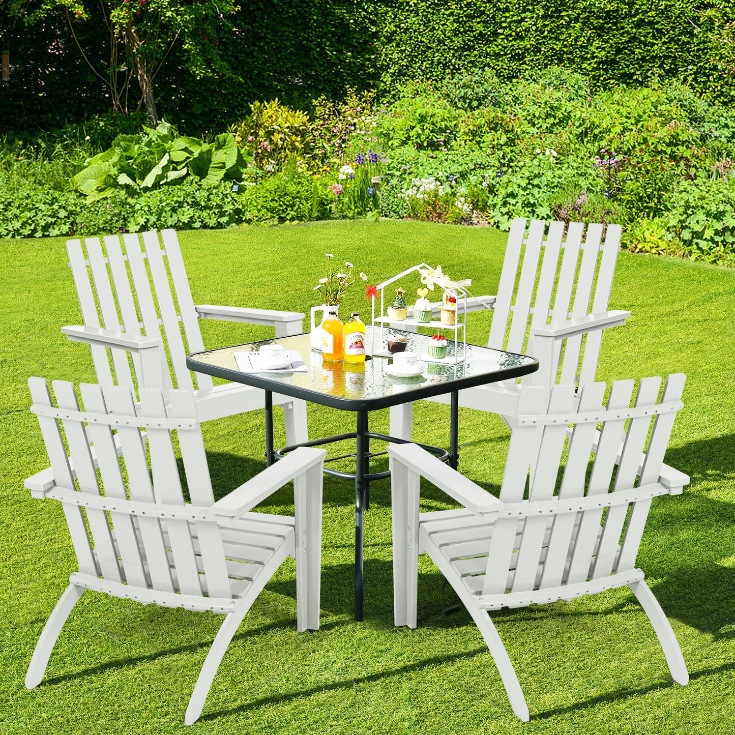 Outdoor Durable Patio Acacia Wood Adirondack Lounge Armchair-White