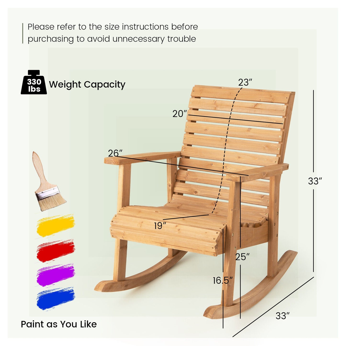 ● Personalize Your Own Chair: The natural color endows a rustic addition to this outdoor rocker. If you want to make it more suitable for your indoor or outdoor decoration just paint it as you like.