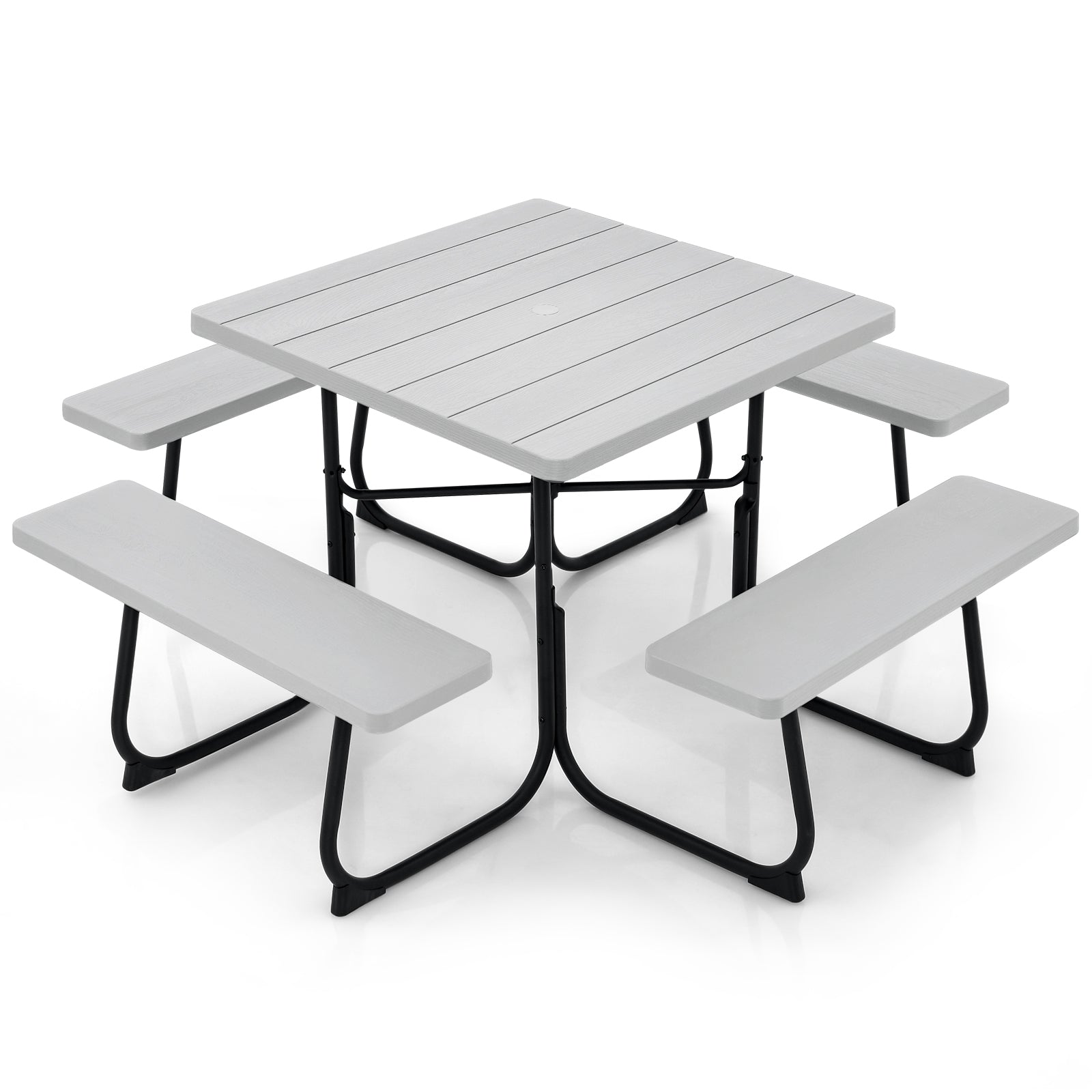 Outdoor Picnic Table with 4 Benches and Umbrella Hole-Gray