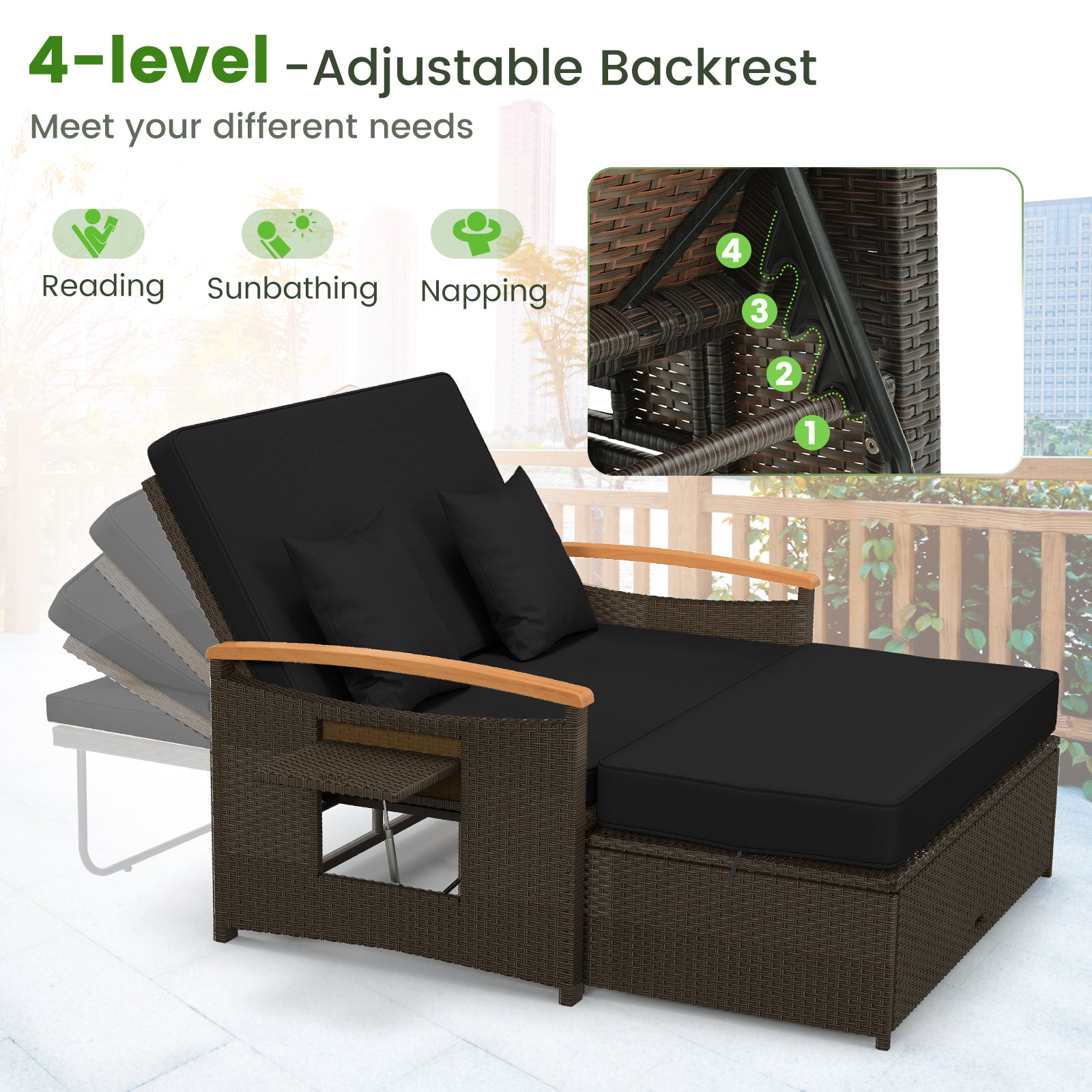 Outdoor Wicker Daybed with Folding Panels and Storage Ottoman-Black