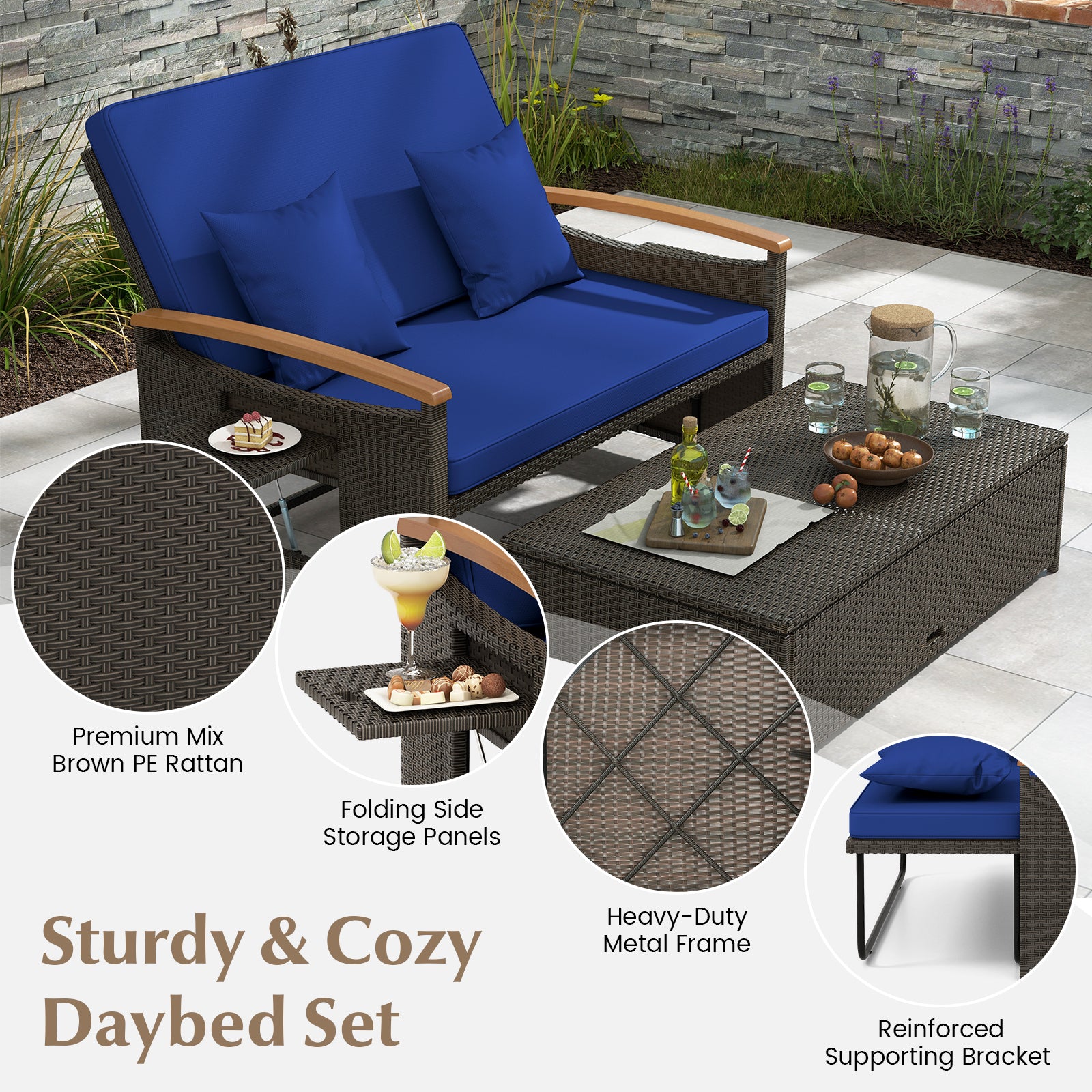 Outdoor Wicker Daybed with Folding Panels and Storage Ottoman-Navy