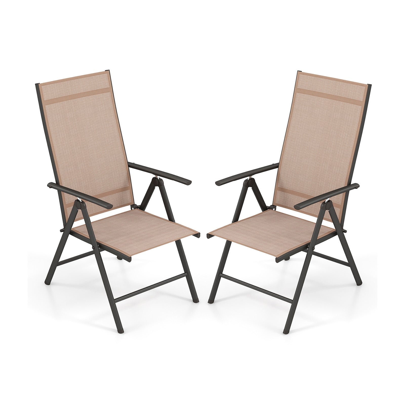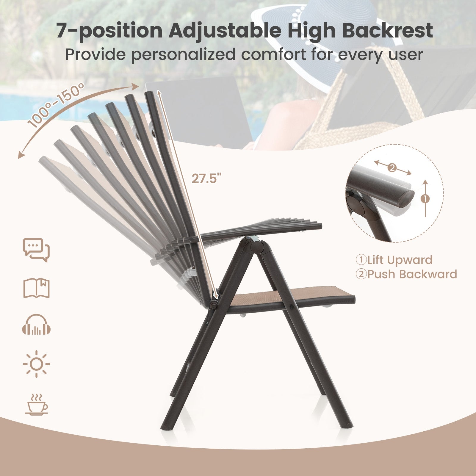 1 Piece Patio Folding Dining Chairs with 7-Level Adjustable High Backrest-Coffee