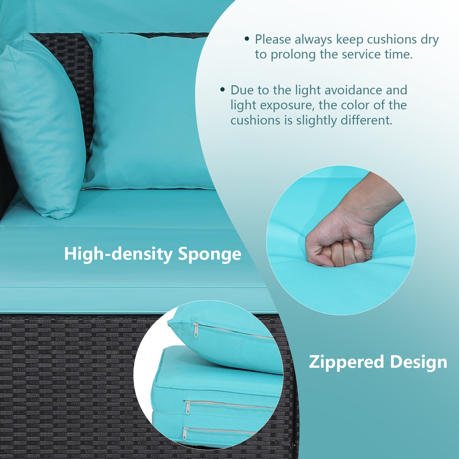 Patio Rattan Daybed with Retractable Canopy and Side Tables-Turquoise