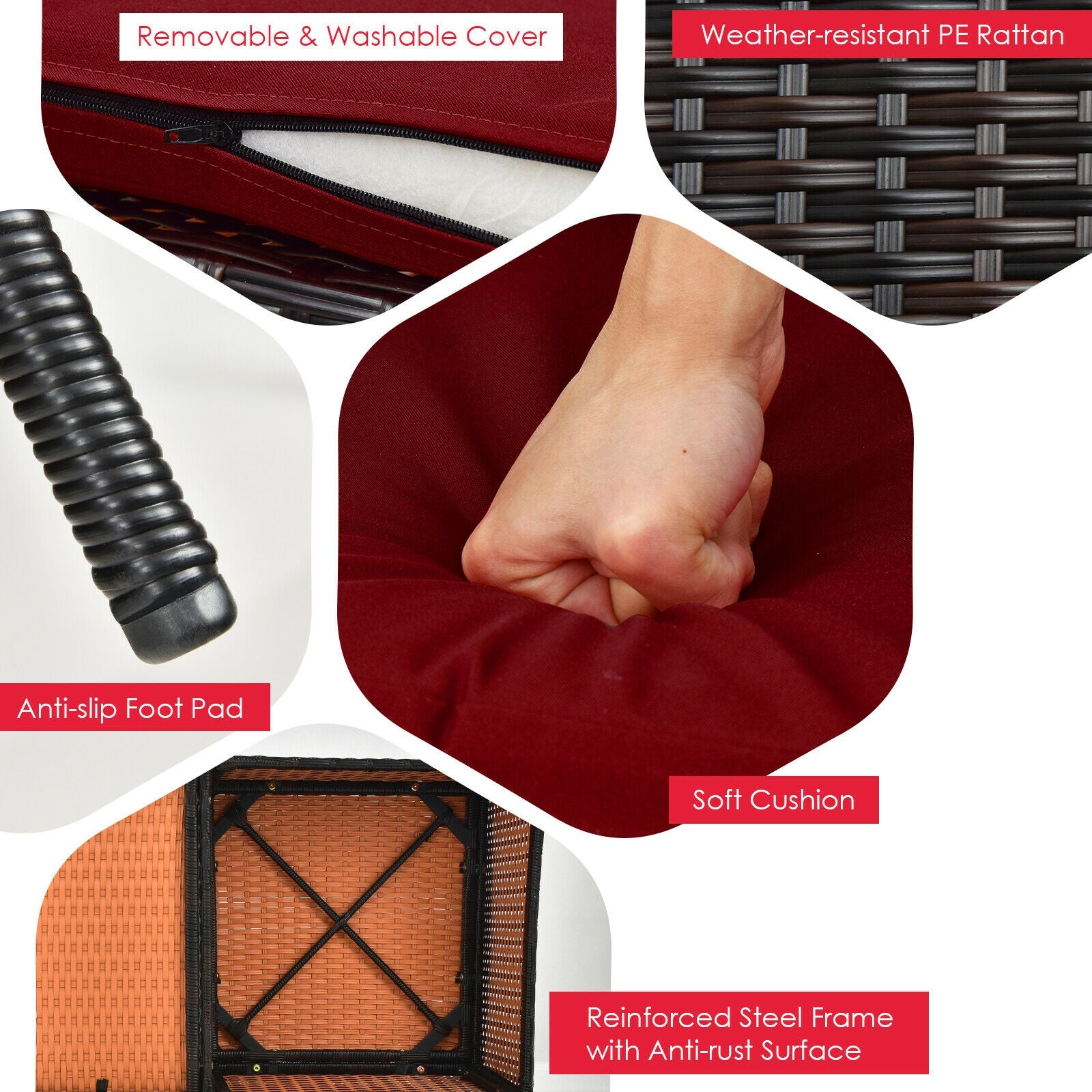 - Weather resistant PE rattan for durability and low maintenance