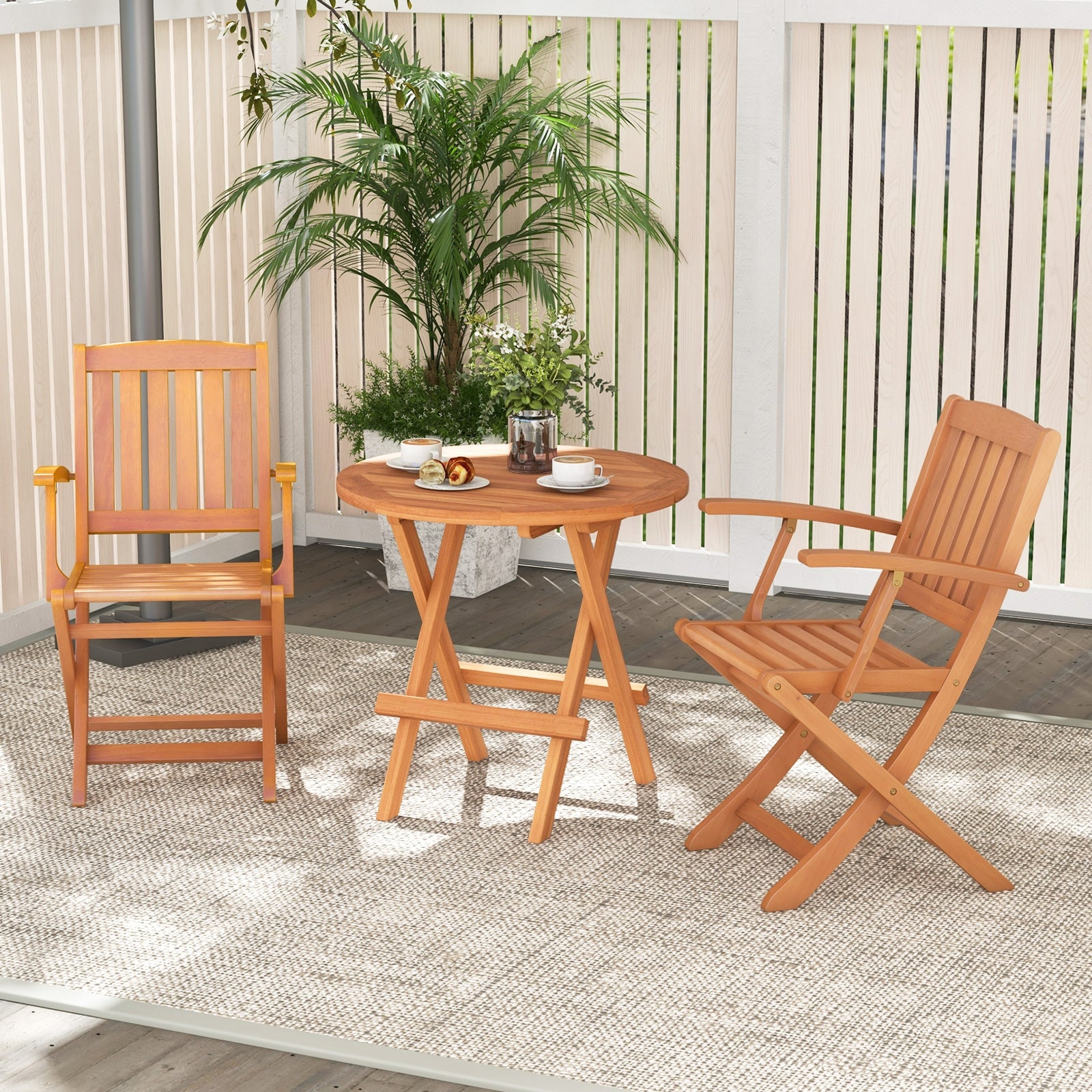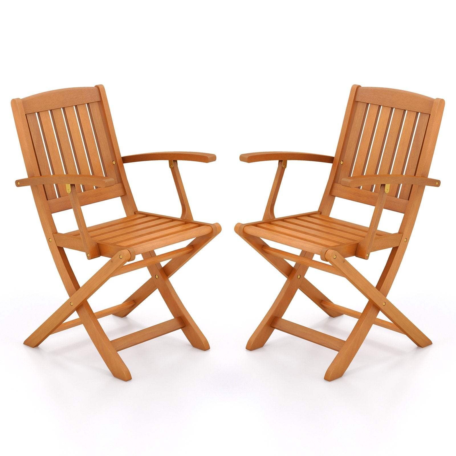 Patio Wood Folding Chair Set of 2 with Armrests and Slatted Seat