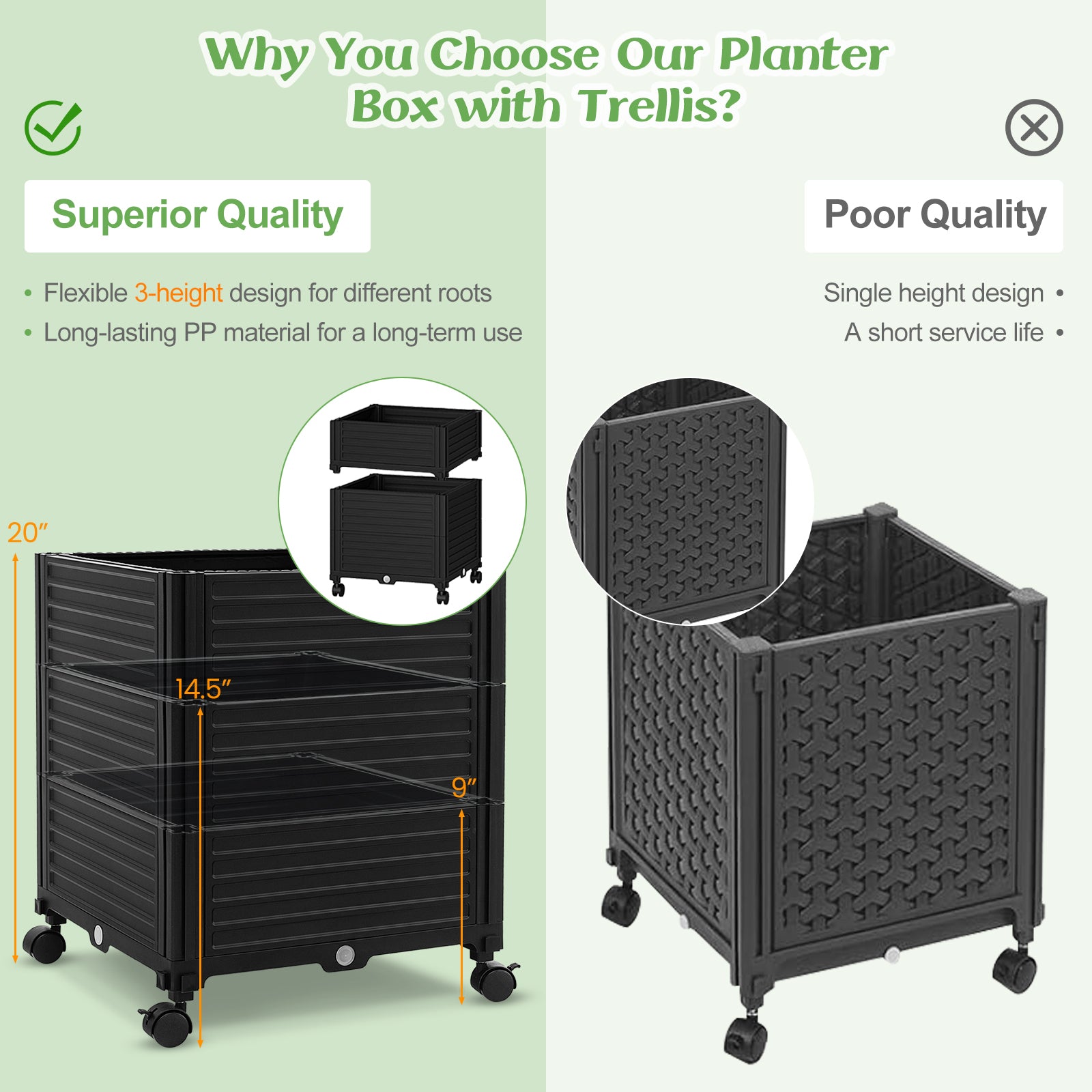 ● 3-Height Garden Bed: Tailor your gardening experience with the adjustable planter box that provides heights of 20" 14.5" and 9" while accommodating various plant sizes and root depths. Besides it is made of premium PP and ensures ideal longevity.