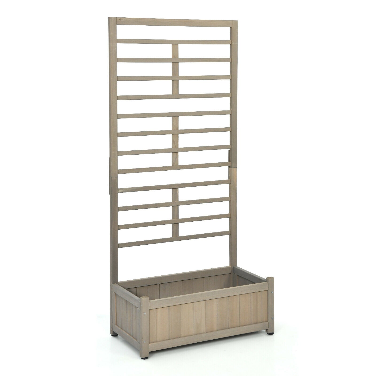 Made of selected fir wood with a painted finish the garden bed has the characteristics of good toughness and deformation-resistant. A large planting area is suitable for cultivating various flowers while the trellis provides sufficient growing space for climbing plants. Designed with removable bottom base the planter box is beneficial for the roots to go further into the ground. The hollow-out wood slats ensure good air permeability and make it easy to empty excess water. Moreover the classical style of this planter box matches well with different places such as the garden backyard balcony etc.
