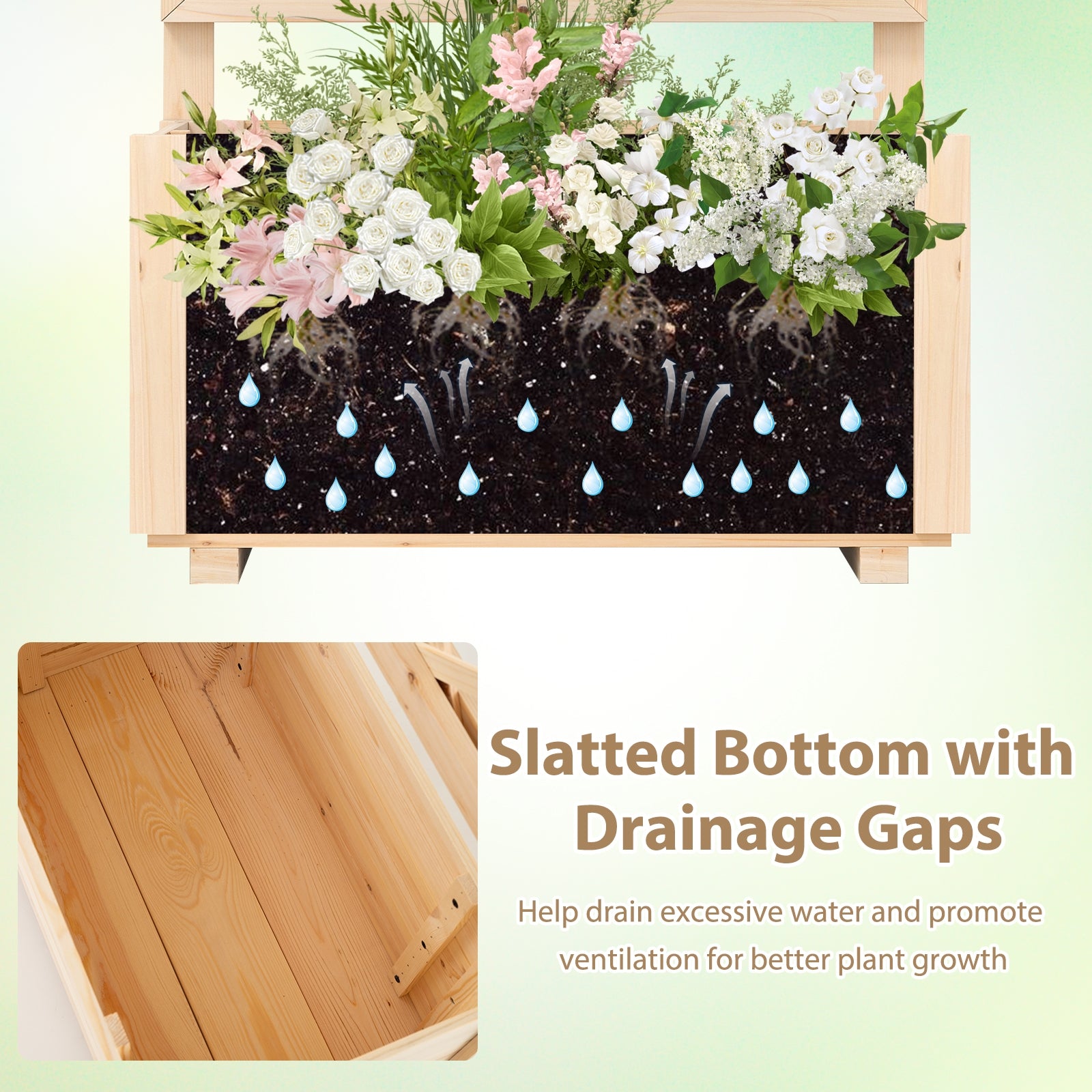 ● Effective Drainage System: Featuring a slatted bottom with drainage gaps the wooden planter box allows excess water to escape preventing water-logging and promoting optimal soil conditions thus fostering a healthy growing environment that nurtures vibrant and flourishing plants.