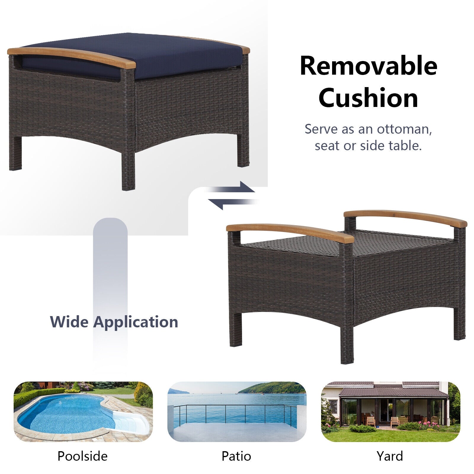 Set of 2 Fade-Resistant Wicker Patio Ottoman-Navy