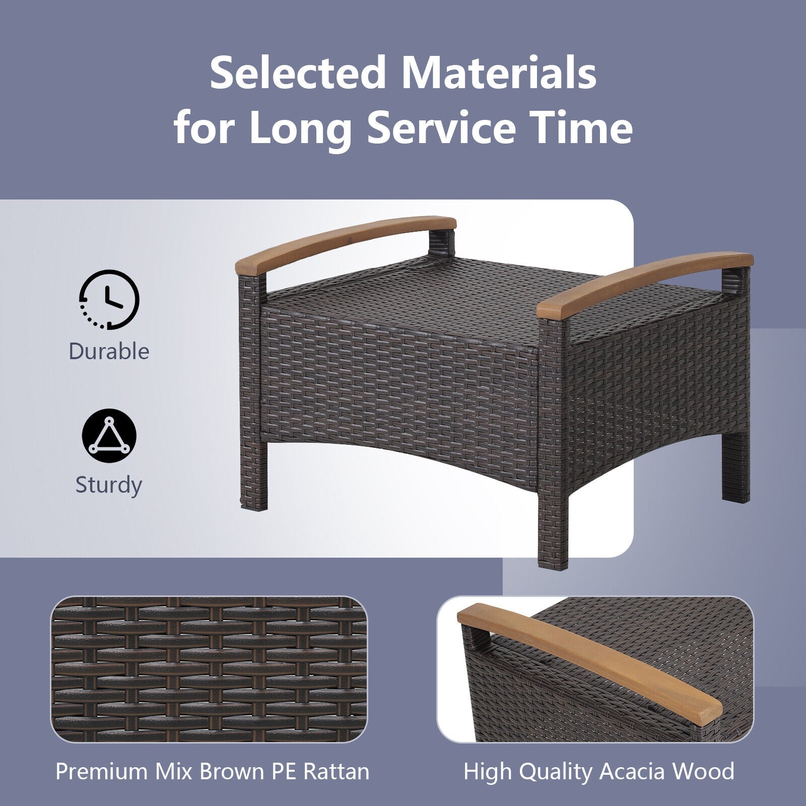 ● Better Outdoor Performance: These outdoor patio ottomans are made of sun-protective and fade-resistant mix brown PE rattan to make them have better adaptation to the outdoor environment. Besides the reinforced construction with anti-slip foot pads ensures strong stability.