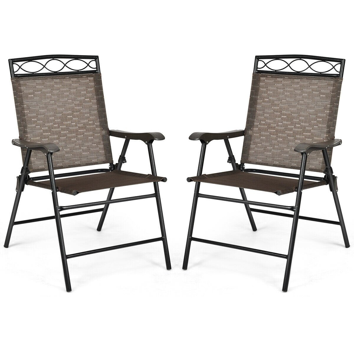 Set of 2 Patio Folding Chairs Sling Portable Dining Chair Set with Armrest