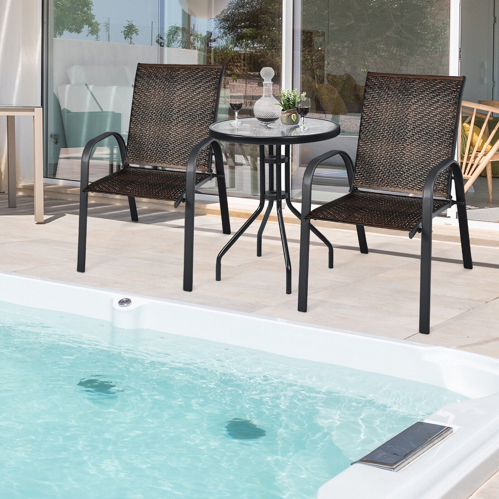 - Rustproof steel frame and all-weather PE rattan for better outdoor performance