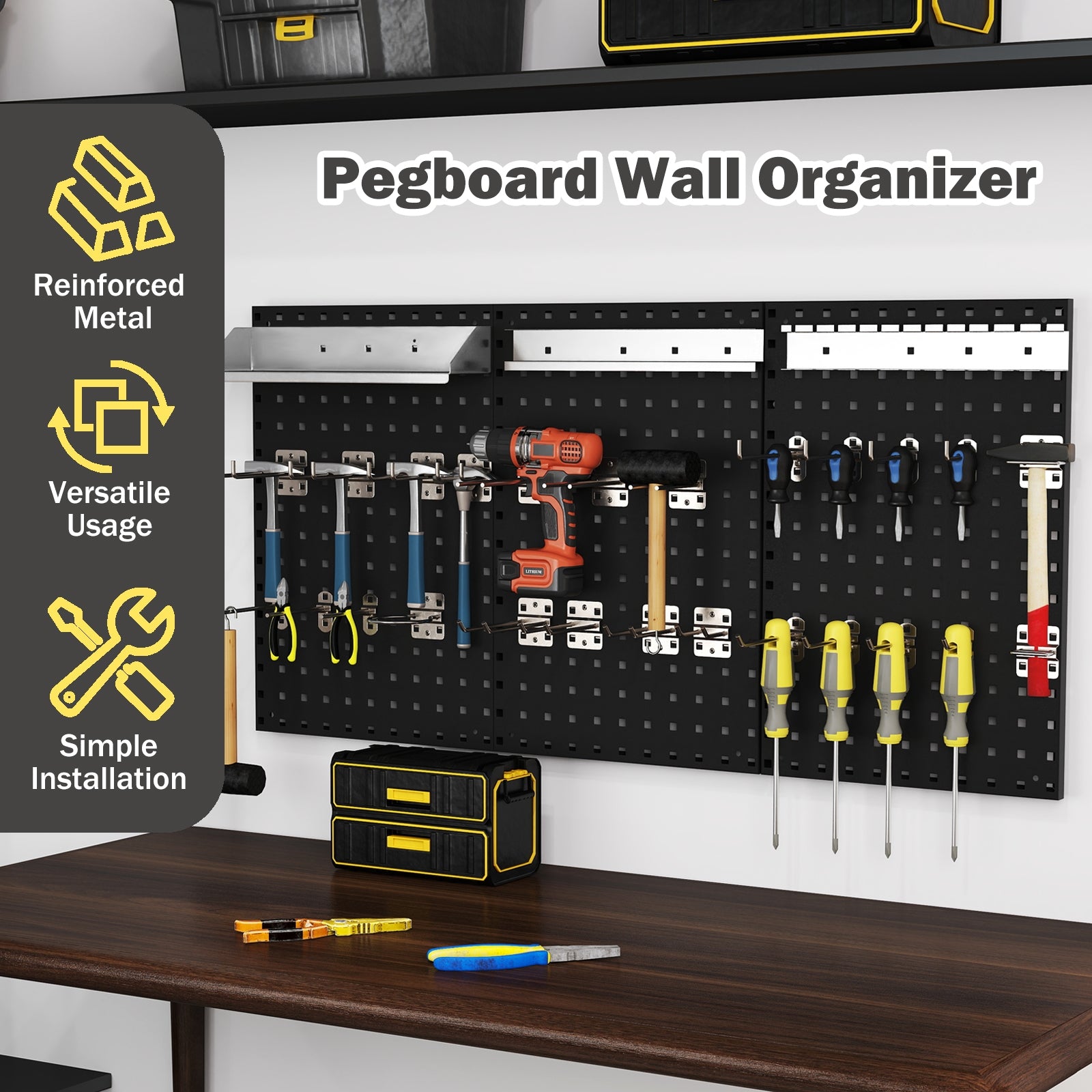Wall-Mounted Pegboard Kit with 3 Pegboards for Garage Workshop-Black