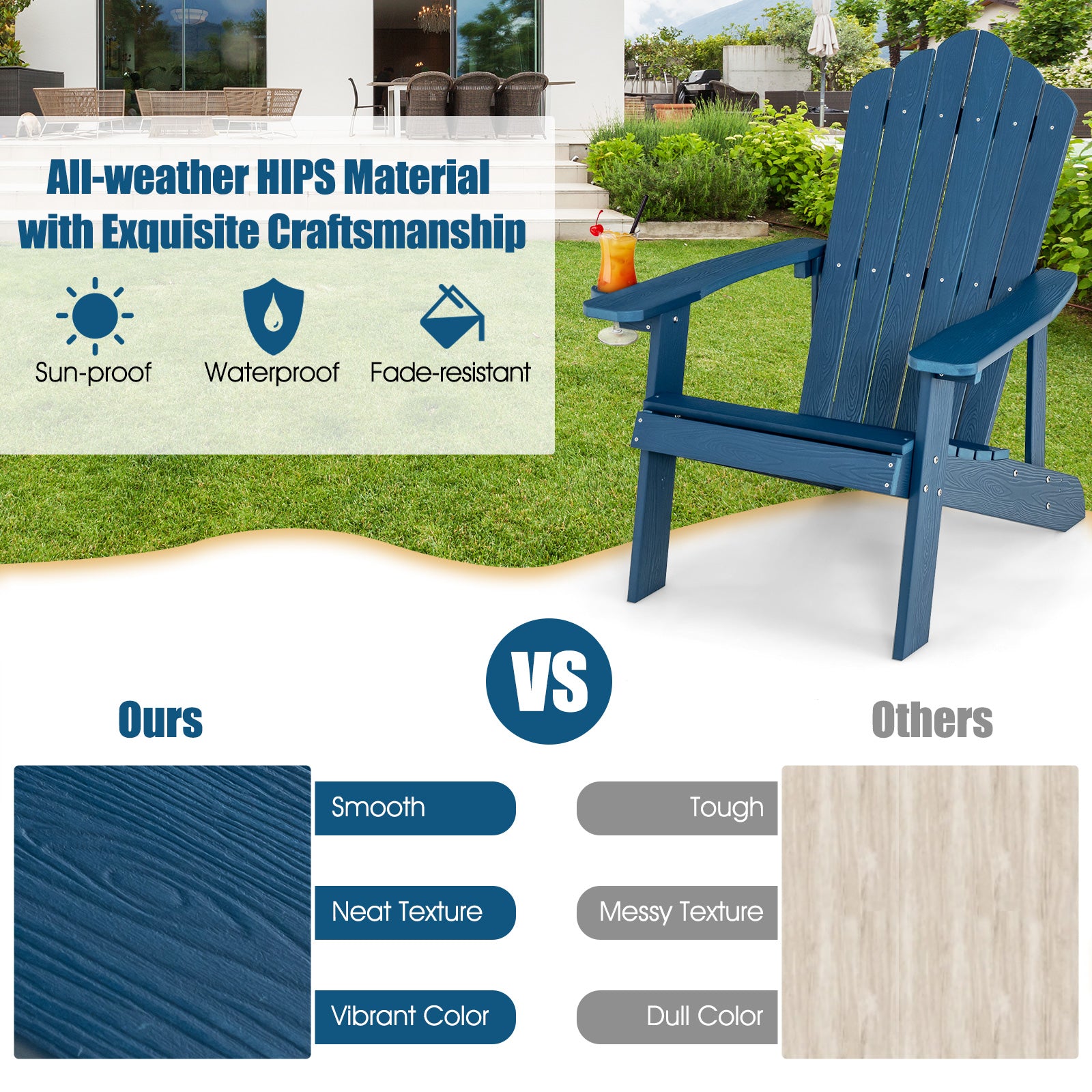 Weather Resistant HIPS Outdoor Adirondack Chair with Cup Holder-Navy