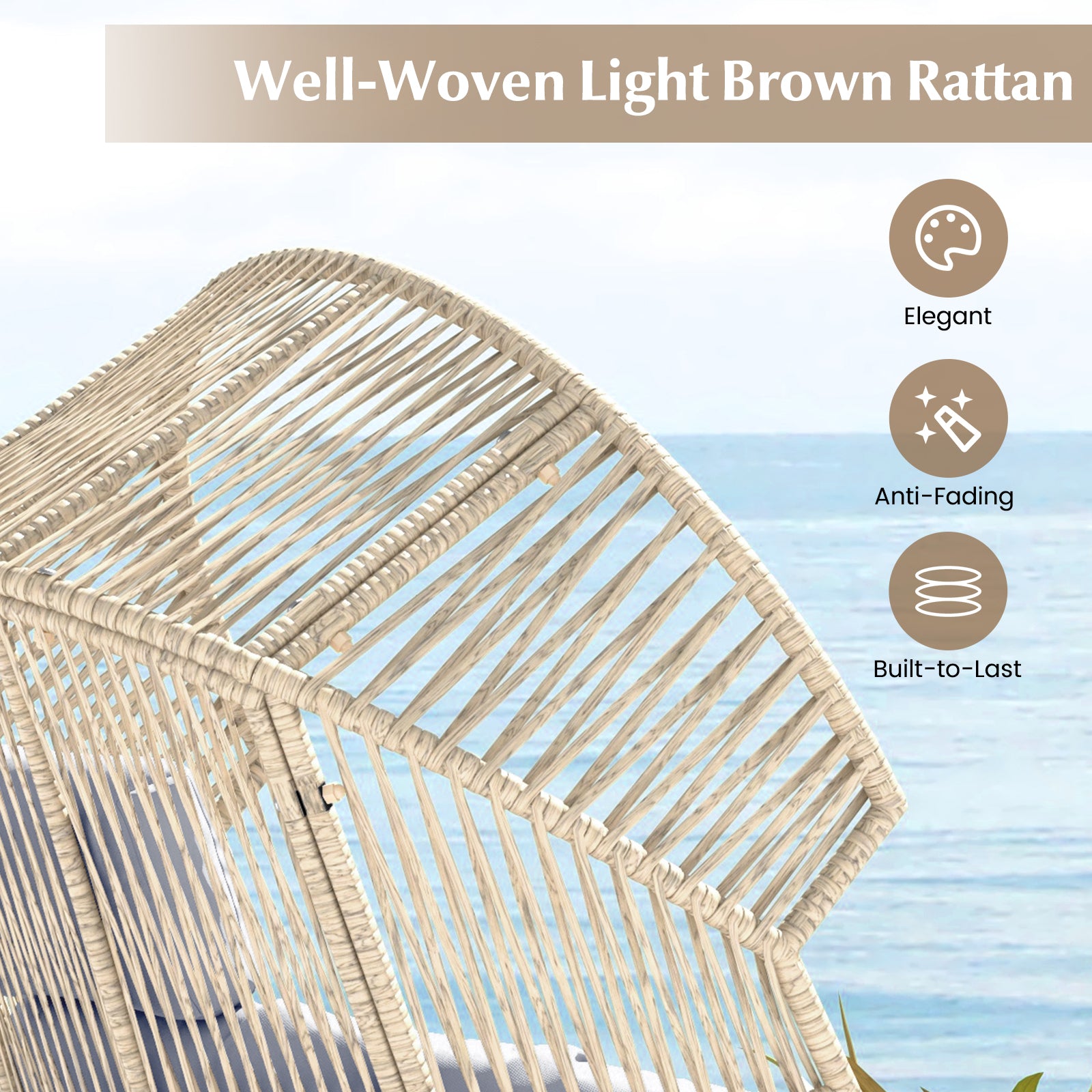 ● Appealing Rattan Design: Crafted with eye-catching and well-woven light brown rattan this patio egg chair adds a touch of elegance to any space. Also the rattan surface is anti-fading and built to last for long-term use.